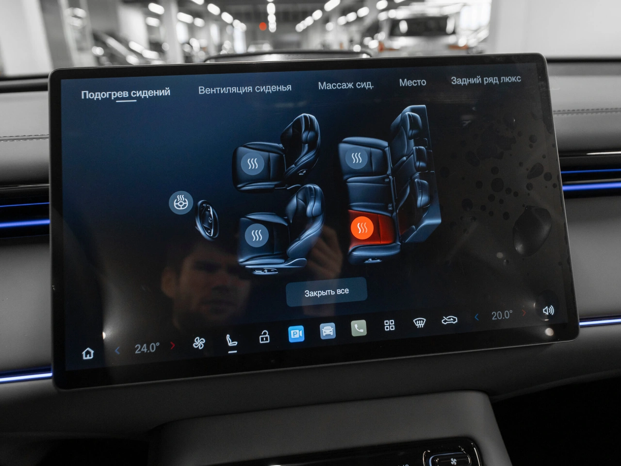 Подогрев передних сидений Электрические стеклоподъёмники всех окон Запуск двигателя с кнопки Парктроник задний Парктроник передний Электрорегулировка сидения водителя с памятью Электрорегулировка сидения пассажира с памятью Система автоматической парковки Система доступа без ключа Усилитель рулевого управления Электропривод крышки багажника Боковые подушки безопасности - задние Система помощи при старте в гору Датчик света Обогрев зеркал Электрорегулировка зеркал Электроскладывание зеркал Вентиляция передних сидений Передний центральный подлокотник Регулировка передних сидений по высоте Электрорегулировка задних сидений Проекционный дисплей Вентиляция задних сидений Сиденья с массажем
