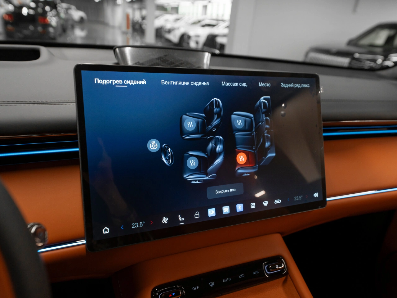 Подогрев передних сидений Электрические стеклоподъёмники всех окон Запуск двигателя с кнопки Парктроник задний Парктроник передний Электрорегулировка сидения водителя с памятью Электрорегулировка сидения пассажира с памятью Система автоматической парковки Система доступа без ключа Усилитель рулевого управления Электропривод крышки багажника Боковые подушки безопасности - задние Система помощи при старте в гору Датчик света Обогрев зеркал Электрорегулировка зеркал Электроскладывание зеркал Вентиляция передних сидений Передний центральный подлокотник Регулировка передних сидений по высоте Электрорегулировка задних сидений Проекционный дисплей Вентиляция задних сидений Сиденья с массажем