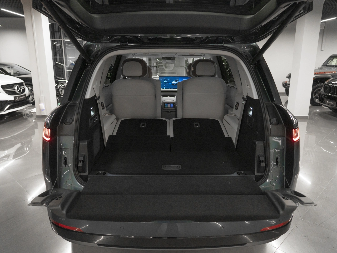 Подогрев всех сидений Электрические стеклоподъёмники всех окон Запуск двигателя с кнопки Парктроник задний Парктроник передний Электрорегулировка сидения водителя с памятью Электрорегулировка сидения пассажира с памятью Система автоматической парковки Система доступа без ключа Солнцезащитные шторки в задних дверях Усилитель рулевого управления Электрорегулировка рулевой колонки Электропривод крышки багажника Боковые подушки безопасности - задние Система помощи при старте в гору Датчик света Обогрев зеркал Электрорегулировка зеркал Электроскладывание зеркал Пневмоподвеска Вентиляция передних сидений Передний центральный подлокотник Складной столик на спинках передних сидений Третий ряд сидений Регулировка передних сидений по высоте Электрорегулировка задних сидений Рулевая колонка с памятью положения Проекционный дисплей Доводчик дверей Вентиляция задних сидений Сиденья с массажем