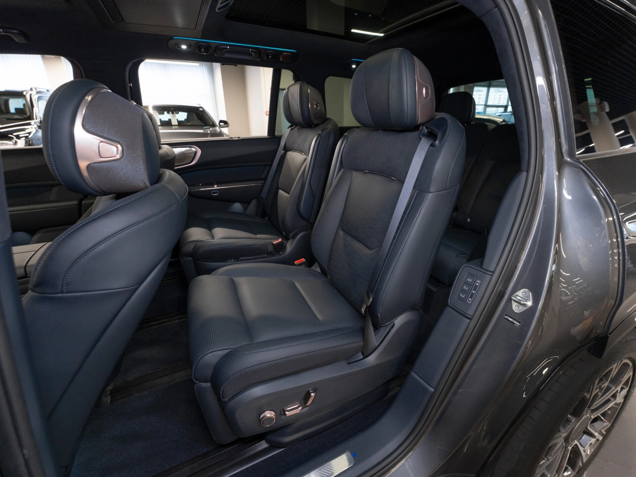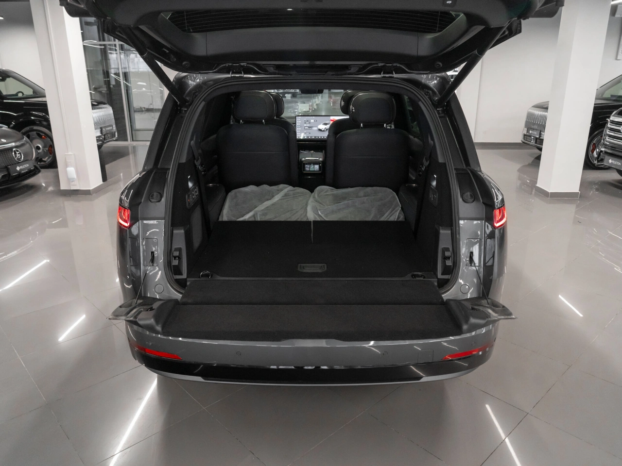 Подогрев всех сидений Электрические стеклоподъёмники всех окон Запуск двигателя с кнопки Парктроник задний Парктроник передний Электрорегулировка сидения водителя с памятью Электрорегулировка сидения пассажира с памятью Система автоматической парковки Система доступа без ключа Солнцезащитные шторки в задних дверях Усилитель рулевого управления Электрорегулировка рулевой колонки Электропривод крышки багажника Боковые подушки безопасности - задние Система помощи при старте в гору Датчик света Обогрев зеркал Электрорегулировка зеркал Электроскладывание зеркал Пневмоподвеска Вентиляция передних сидений Передний центральный подлокотник Складной столик на спинках передних сидений Третий ряд сидений Регулировка передних сидений по высоте Электрорегулировка задних сидений Рулевая колонка с памятью положения Проекционный дисплей Доводчик дверей Вентиляция задних сидений Сиденья с массажем
