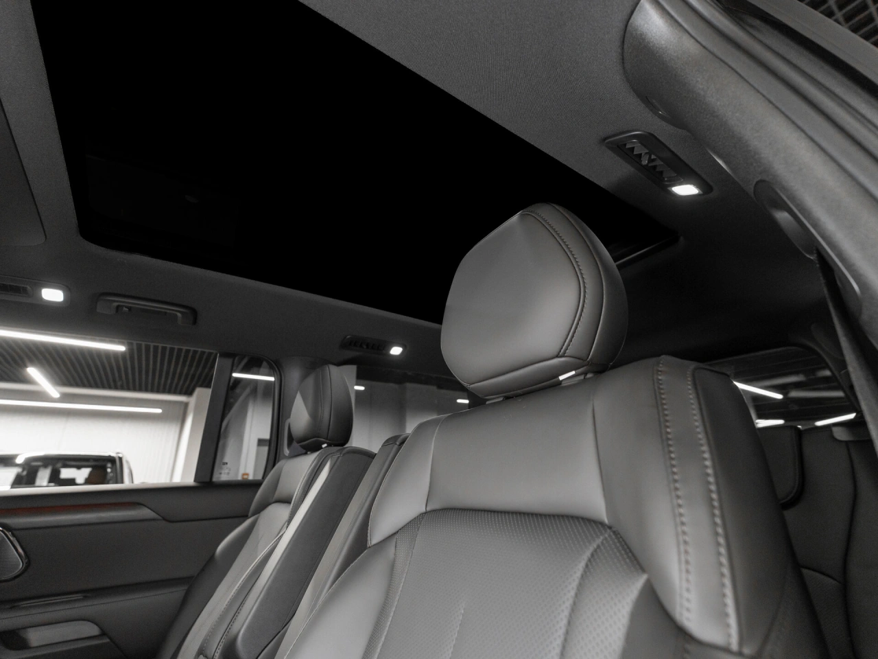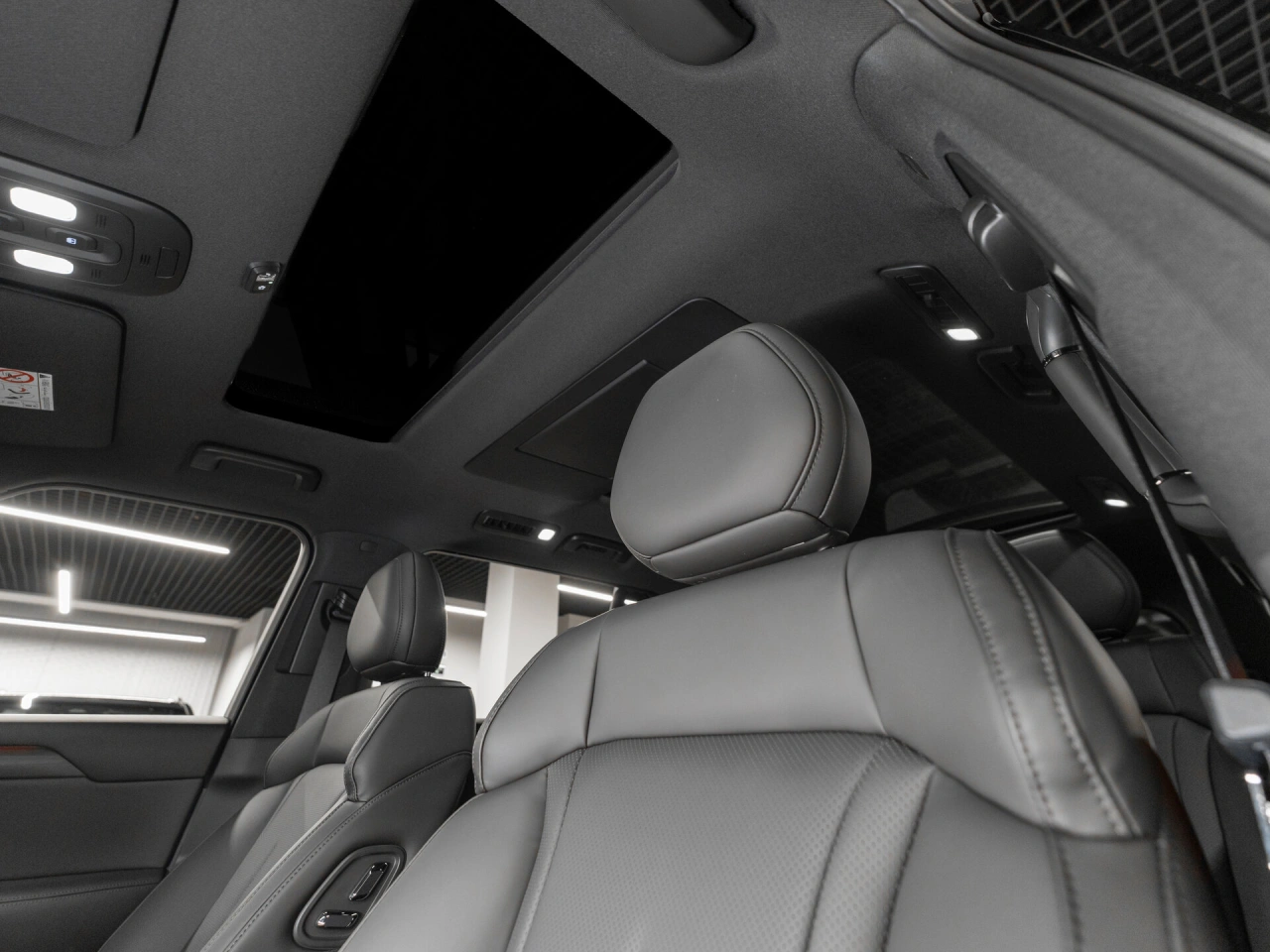 Кожаный салон Панорамная крыша Отделка кожей рулевого колеса Регулировка сиденья водителя по высоте Мультифункциональное рулевое колесо Отделка потолка чёрной тканью Декоративная подсветка салона