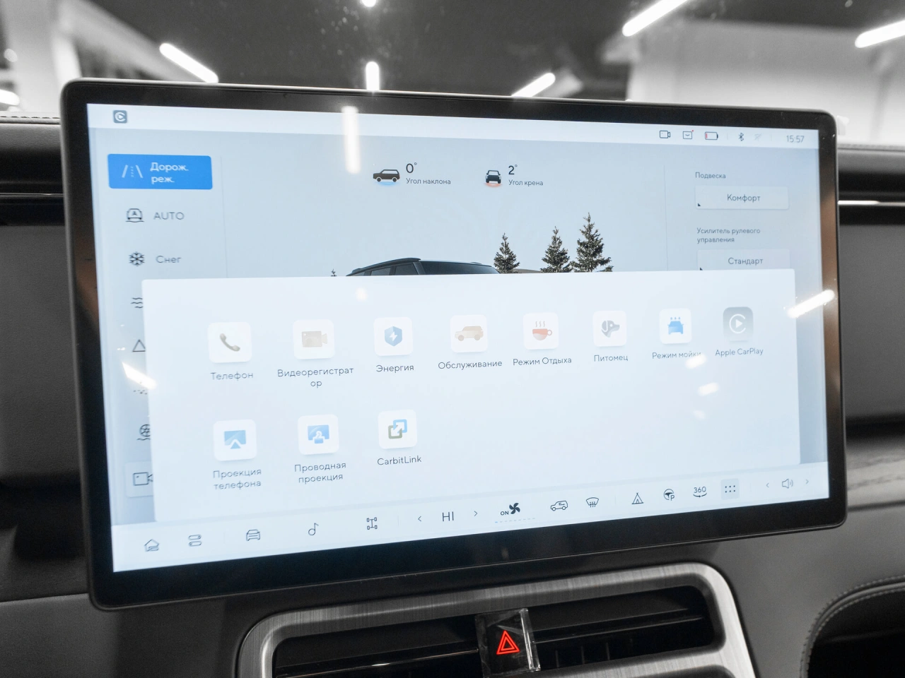 Климат-контроль многозонный Обогрев рулевого колеса Активная подвеска