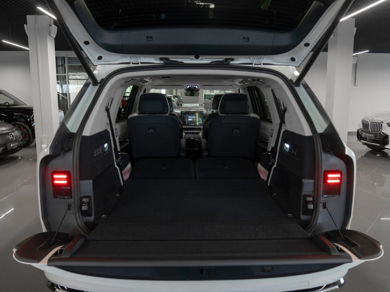 Подогрев всех сидений Электрические стеклоподъёмники всех окон Запуск двигателя с кнопки Парктроник задний Парктроник передний электрорегулировка сиденья водителя электрорегулировка сиденья пассажира Система автоматической парковки Система доступа без ключа Солнцезащитная шторка на заднем стекле Солнцезащитные шторки в задних дверях Усилитель рулевого управления Электрорегулировка рулевой колонки Электропривод крышки багажника Система помощи при старте в гору Датчик света Обогрев зеркал Электрорегулировка зеркал Электроскладывание зеркал Пневмоподвеска Вентиляция передних сидений Передний центральный подлокотник Складной столик на спинках передних сидений Третий ряд сидений Регулировка передних сидений по высоте Электрорегулировка задних сидений Рулевая колонка с памятью положения Проекционный дисплей Доводчик дверей Вентиляция задних сидений Сиденья с массажем
