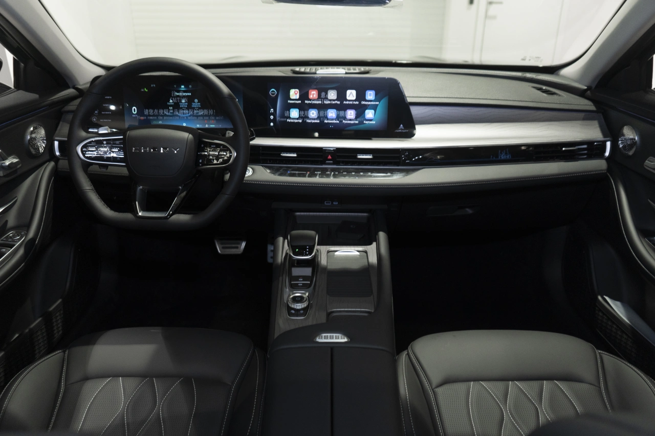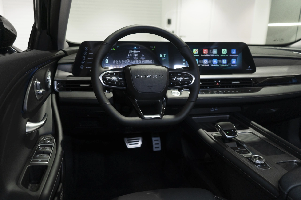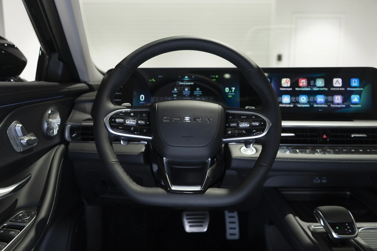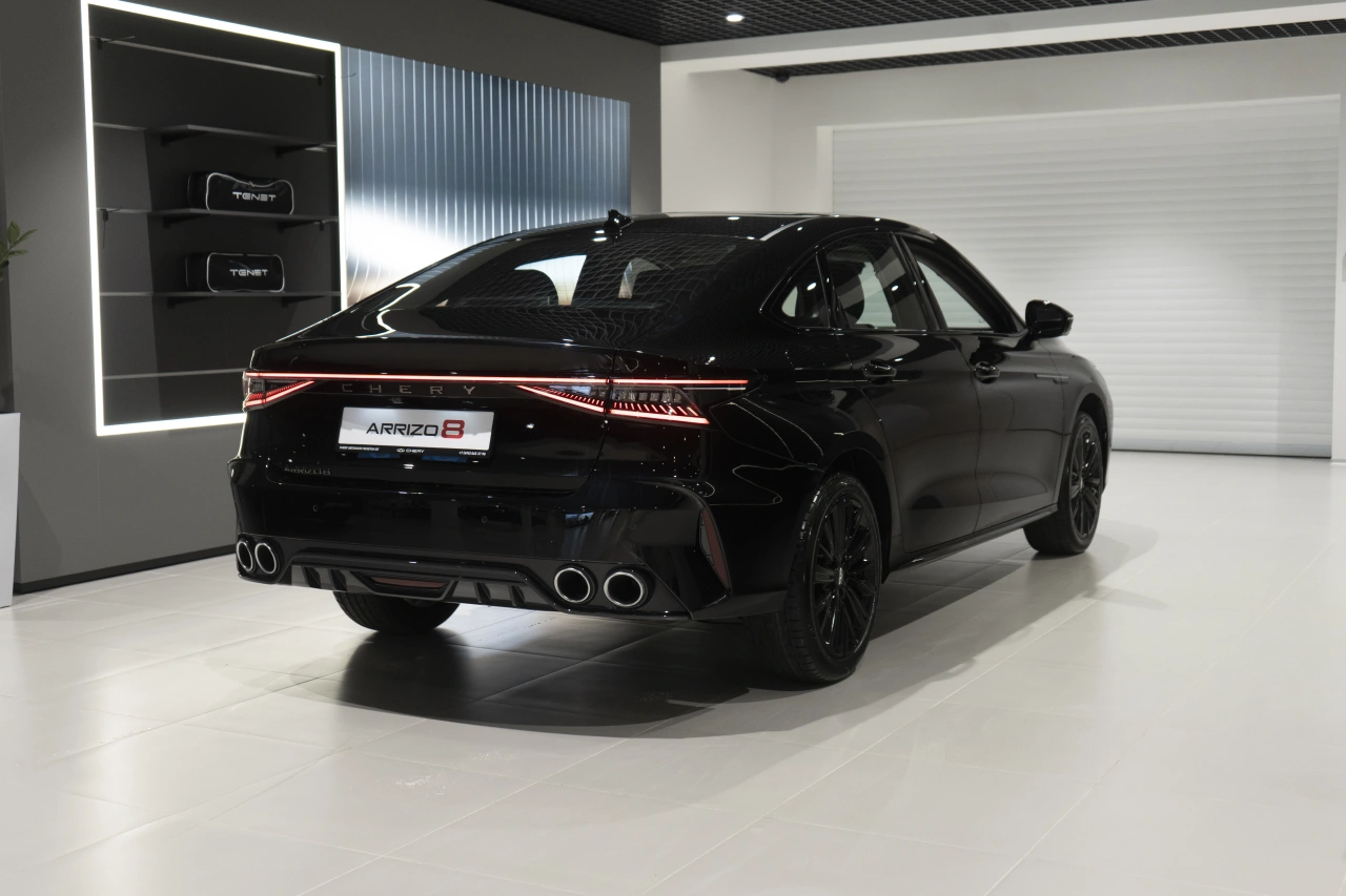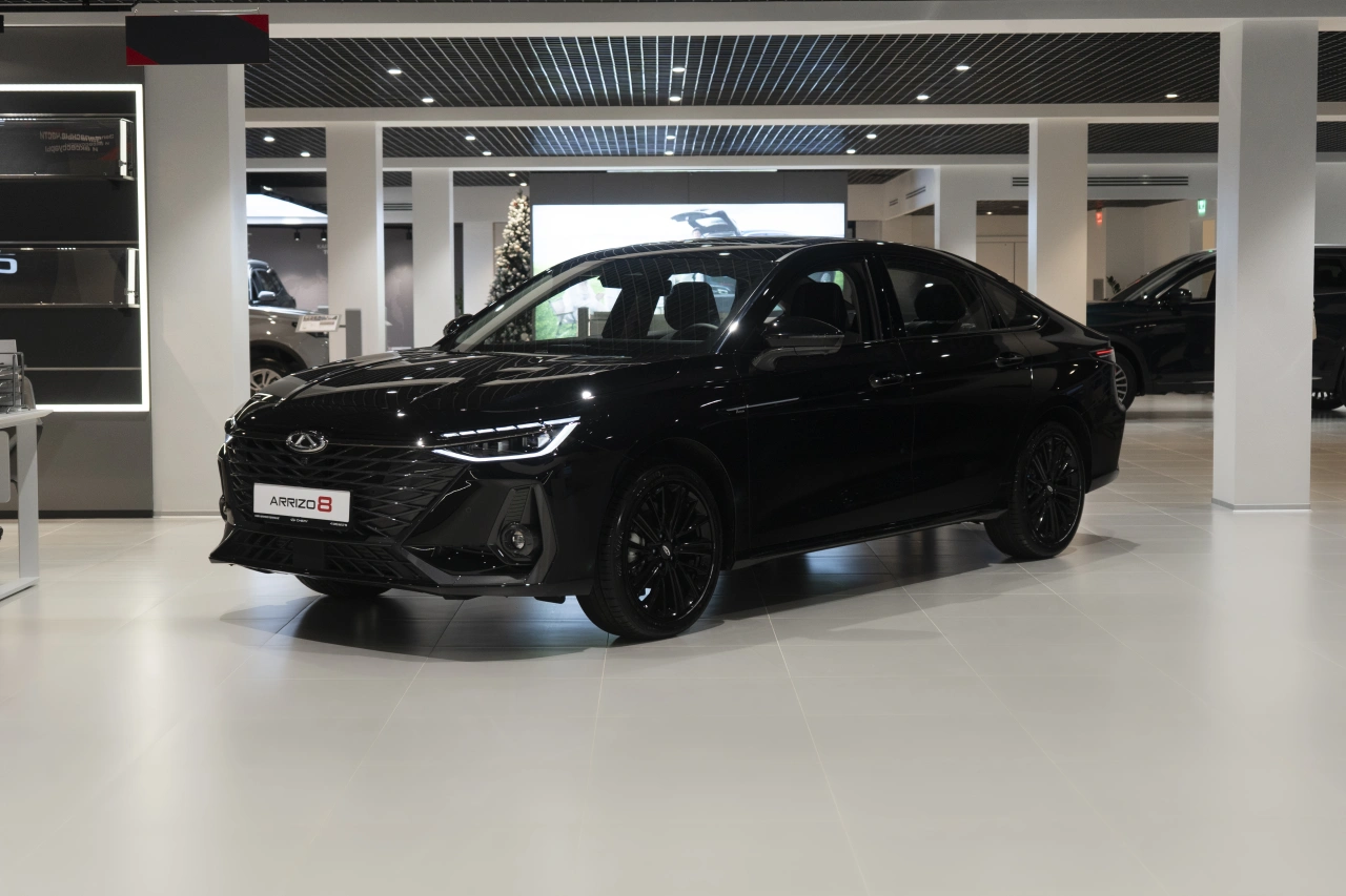 Chery Arrizo 8 I поколения 2024 года — это седан с роботизированной коробкой передач и бензиновым двигателем объёмом 1,6 литра и мощностью 186 лошадиных сил.\nЧёрный цвет кузова и современный дизайн придают автомобилю стильный вид, который подойдёт как для городских поездок, так и для выездов за город.Автомобиль оснащён бортовым компьютером, аудиосистемой с поддержкой Bluetooth и USB, а также розеткой 12V.\nНавигационная система, поддержка Android Auto и CarPlay делают использование автомобиля удобным и функциональным.В Chery Arrizo 8 предусмотрены двухзонный климат-контроль, электрорегулировка сиденья водителя, подогрев всех сидений и электростеклоподъёмники на всех дверях.\nРегулировка руля по высоте и вылету, усилитель рулевого управления и адаптивный круиз-контроль обеспечивают комфорт и безопасность вождения.Система доступа без ключа, дистанционный запуск двигателя и запуск двигателя с кнопки делают эксплуатацию автомобиля удобной и современной.\nПарктроник задний, камера заднего вида и камера 360 градусов помогают при парковке и маневрировании.Безопасность автомобиля обеспечивают антиблокировочная система тормозов (ABS), система курсовой стабилизации (ESP / ESC / DSC / VSA), система помощи при торможении, подушки безопасности водителя и пассажира, боковые подушки безопасности и оконные подушки безопасности (шторки).\nЭРА-ГЛОНАСС обеспечивает связь в случае чрезвычайной ситуации.Обогрев зеркал, электрорегулировка зеркал и электроскладывание зеркал добавляют удобства в использовании.\nДиски размером 18 дюймов, центральный замок и иммобилайзер обеспечивают надёжность и защиту автомобиля.Обивка салона из искусственной кожи, декоративная подсветка салона и отделка кожей рулевого колеса создают уютную и современную атмосферу внутри автомобиля.\nЛюк, панорамная крыша и передний центральный подлокотник добавляют комфорта и удобства.