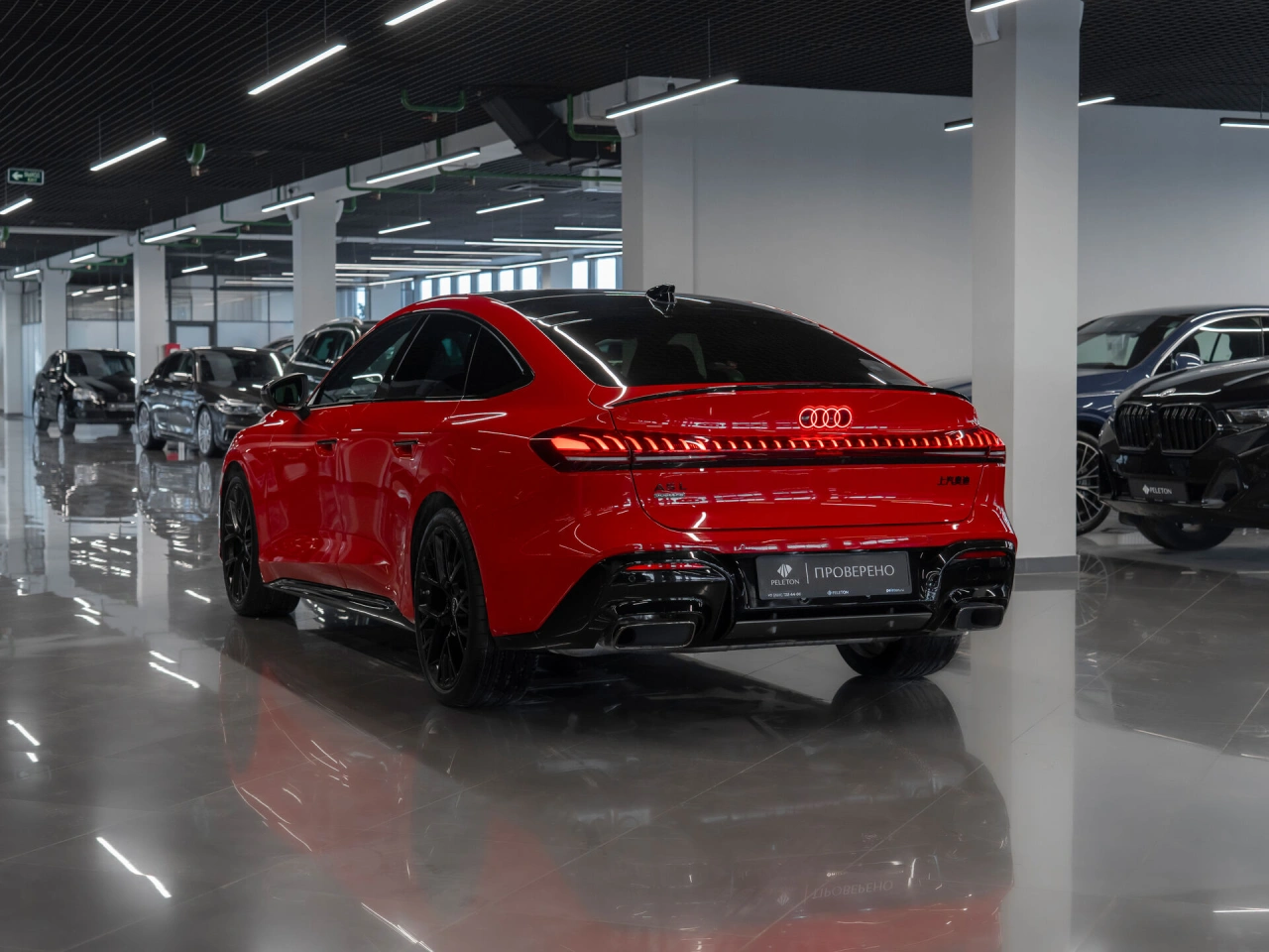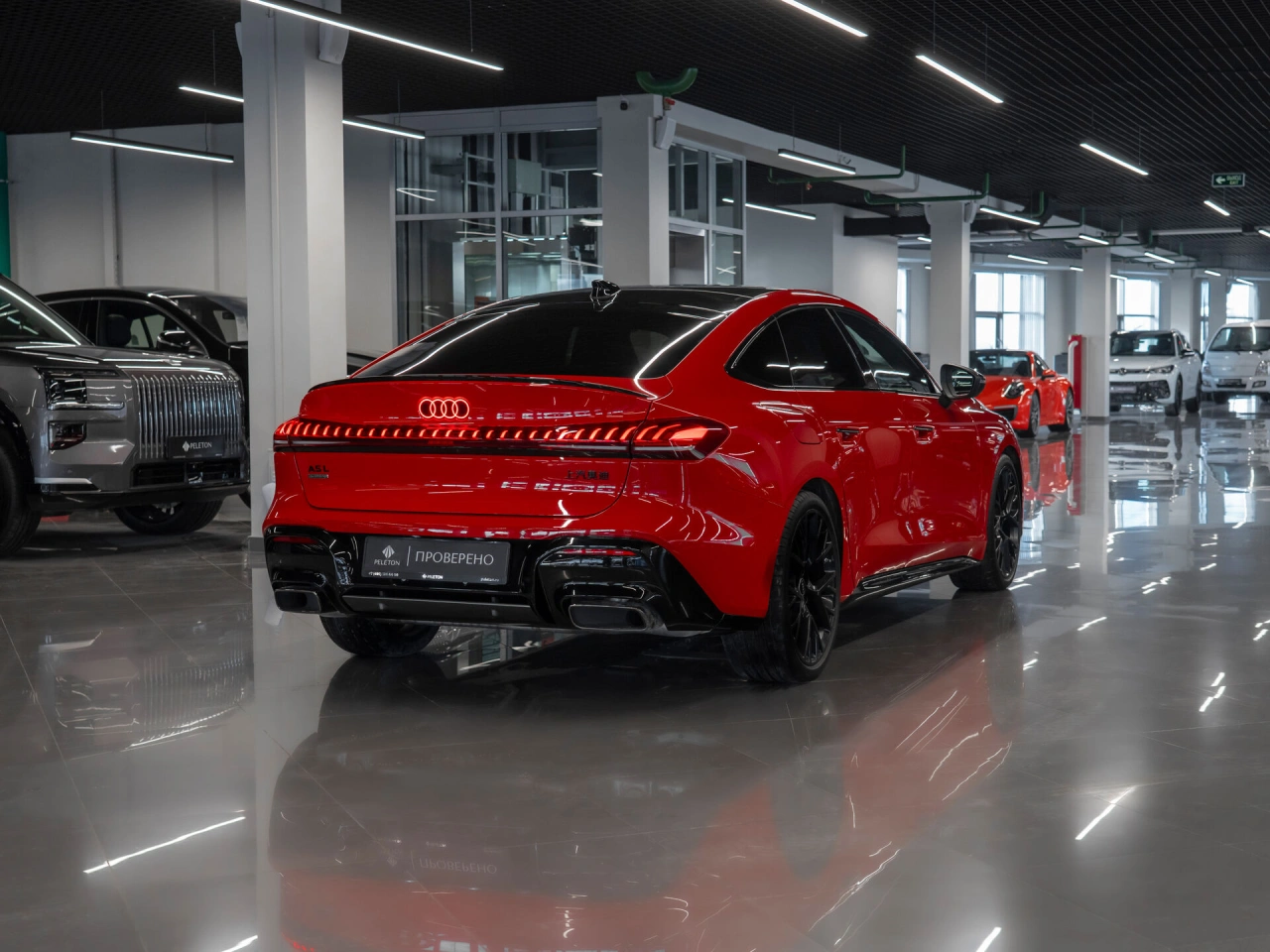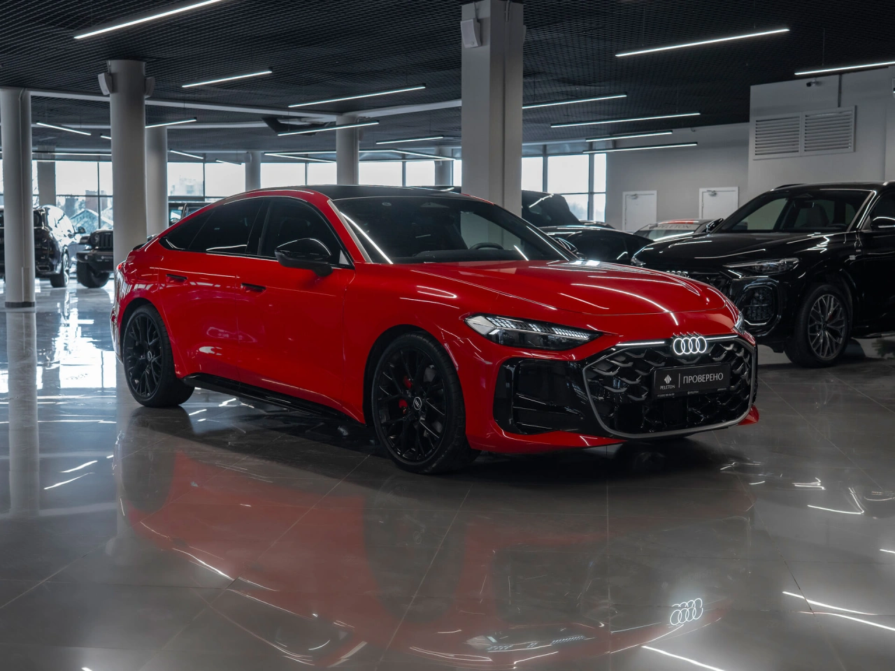 <p class="padding-bot"><span class="strong">Седан</span> | <span class="strong">Полный привод</span> | <span class="strong">Робот</span> | <span class="strong">Новый</span> | <span class="strong">Бензин 204 л.с.</span></p>Новый автомобиль - не требует дополнительных вложений<h3 >Что с документами</h3><ul class="padding-bot"><li >⦁ ПТС электронный</li><li >⦁ Полный комплект ключей и документов</li><li >⦁ Возможна любая форма продажи и оплаты</li></ul><h3 >Чем выделяется</h3><ul class="padding-bot"><li >⦁ Кузов в дерзком красном цвете</li><li >⦁ Бензиновый двигатель 204 л.с.\n</li><li >⦁ Роботизированная КПП</li><li >⦁ Полный привод</li><li >⦁ S-line</li><li >⦁ Панорамная крыша</li><li >⦁ Бесключевой доступ</li><li >⦁ Запуск двигателя с кнопки</li><li >⦁ Цифровая приборная панель</li><li >⦁ Мультируль в коже</li><li >⦁ Многофункциональная мультимедиа с Carplay</li><li >⦁ Индивидуальный экран для переднего пассажира</li><li >⦁ Беспроводная зарядка для смартфона</li><li >⦁ Двухзонный климат-контроль</li><li >⦁ Система кругового обзора + парковочный ассистент</li><li >⦁ Мониторинг слепых зон</li><li >⦁ Контроль полосы движения</li><li >⦁ Адаптивный круиз-контроль</li><li >⦁ Атмосферная подсветка салона</li><li >⦁ Черный потолок в бархатной Алькантаре</li><li >⦁ Премиальная акустика Bang and Olufsen</li><li >⦁ Расширенная отделка салона черной кожей и Алькантарой с красной ромбовидной строчкой</li><li >⦁ Электропривод передних сидений, зеркал и стеклоподъемников</li><li >⦁ Эргономичные передние сиденья с боковой поддержкой</li><li >⦁ Память положения сиденья водителя</li><li >⦁ Зиний пакет (электрообогрев передних сидений, руля)</li><li >⦁ Центральный подлокотник для пассажиров 2-го ряда</li><li >⦁ Омыватель фар</li><li >⦁ Тонировка</li></ul>