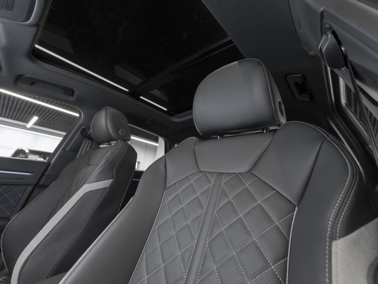 Обивка салона: комбинированый Панорамная крыша Отделка кожей рулевого колеса Спортивные передние сидения Мультифункциональное рулевое колесо Декоративная подсветка салона