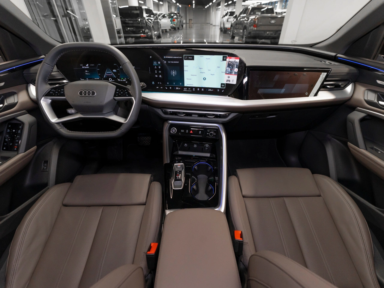 <p class="padding-bot"><span class="strong">Внедорожник</span> | <span class="strong">Полный привод</span> | <span class="strong">Робот</span> | <span class="strong">Пневма</span> | <span class="strong">Новый</span> | <span class="strong">Пакет S-Line</span> | <span class="strong">Бензин 272 л.с.</span></p>Новый автомобиль - не требует дополнительных вложений<h3 >Что с документами</h3><ul class="padding-bot"><li >* ПТС электронный</li><li >* Полный комплект ключей и документов</li><li >* Возможна любая форма продажи и оплаты</li></ul><h3 >Чем выделяется</h3><ul class="padding-bot"><li >* Немецкая сборка</li><li >* Кузов в цвете серого сланца</li><li >* Бензиновый двигатель 272 л.с.</li><li >* Полный привод</li><li >* Роботизированная КПП</li><li >* Пневмоподвеска</li><li >* Пакет S-Line (улучшения и дополнительные опции по кузову/в салоне)</li><li >* Русифицирован</li><li >* Панорамная крыша</li><li >* Запуск двигателя с кнопки</li><li >* Цифровая приборная панель</li><li >* Скошенный мультируль в коже</li><li >* Подрулевые лепестки</li><li >* Многофункциональная мультимедиа с программой СаrРlаy</li><li >* Премиальная аудиосистема Bang & Olufsen</li><li >* Индивидуальный мультимедийный дисплей для пассажира 1-го ряда</li><li >* Трехзонный климат-контроль</li><li >* Мониторинг слепых зон</li><li >* Проекция на ветровое стекло</li><li >* Круиз-контроль</li><li >* Круговой обзор + парктроники + автопарковка</li><li >* Контурная подсветка салона</li><li >* Расширенная отделка салона кожей цвета молочного шоколада</li><li >* Эргономичные передние сиденья с боковой поддержкой</li><li >* Солнцезащитные шторки и центральный подлокотник для пассажиров 2-го ряда</li><li >* Крепления для детских кресел ISOFIX</li><li >* Электропривод передних сидений, зеркал, стеклоподъемников и двери багажника</li><li >* Электрообогрев всех сидений и руля</li><li >* Вентиляция передних сидений</li><li >* Память положения сиденья водителя</li><li >* Электроручник</li><li >* Диодная оптика</li><li >* Рейлинги</li><li >* Тонировка</li><li >* Омыватель фар</li></ul>