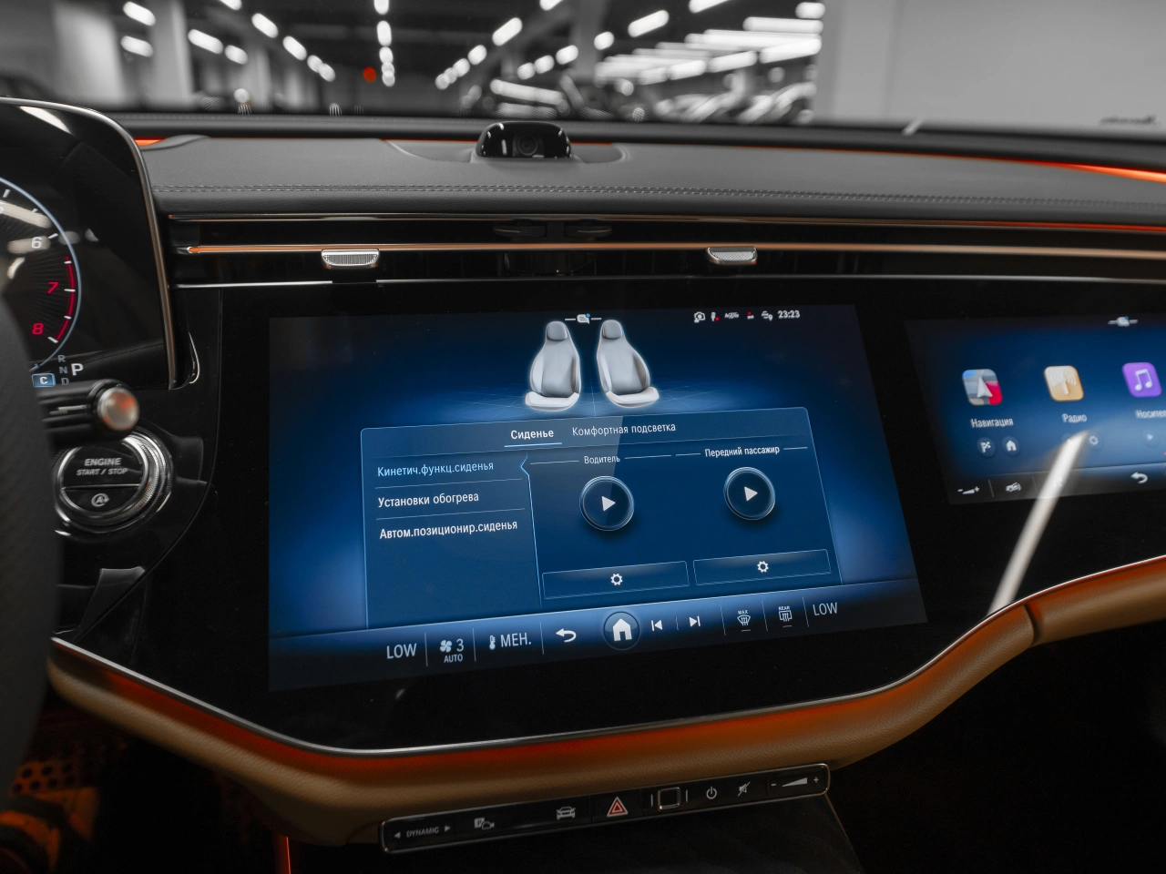 Подогрев всех сидений Электрические стеклоподъёмники всех окон Запуск двигателя с кнопки Парктроник задний Парктроник передний электрорегулировка сиденья водителя электрорегулировка сиденья пассажира Система автоматической парковки Система доступа без ключа Усилитель рулевого управления Электрорегулировка рулевой колонки Электропривод крышки багажника Коленная подушка безопасности водителя Боковые подушки безопасности - задние Датчик света Обогрев лобового стекла Обогрев форсунок стеклоомывателей Электрорегулировка зеркал Электроскладывание зеркал Вентиляция передних сидений Подрулевые лепестки переключения передач Android Auto Регулировка передних сидений по высоте Проекционный дисплей