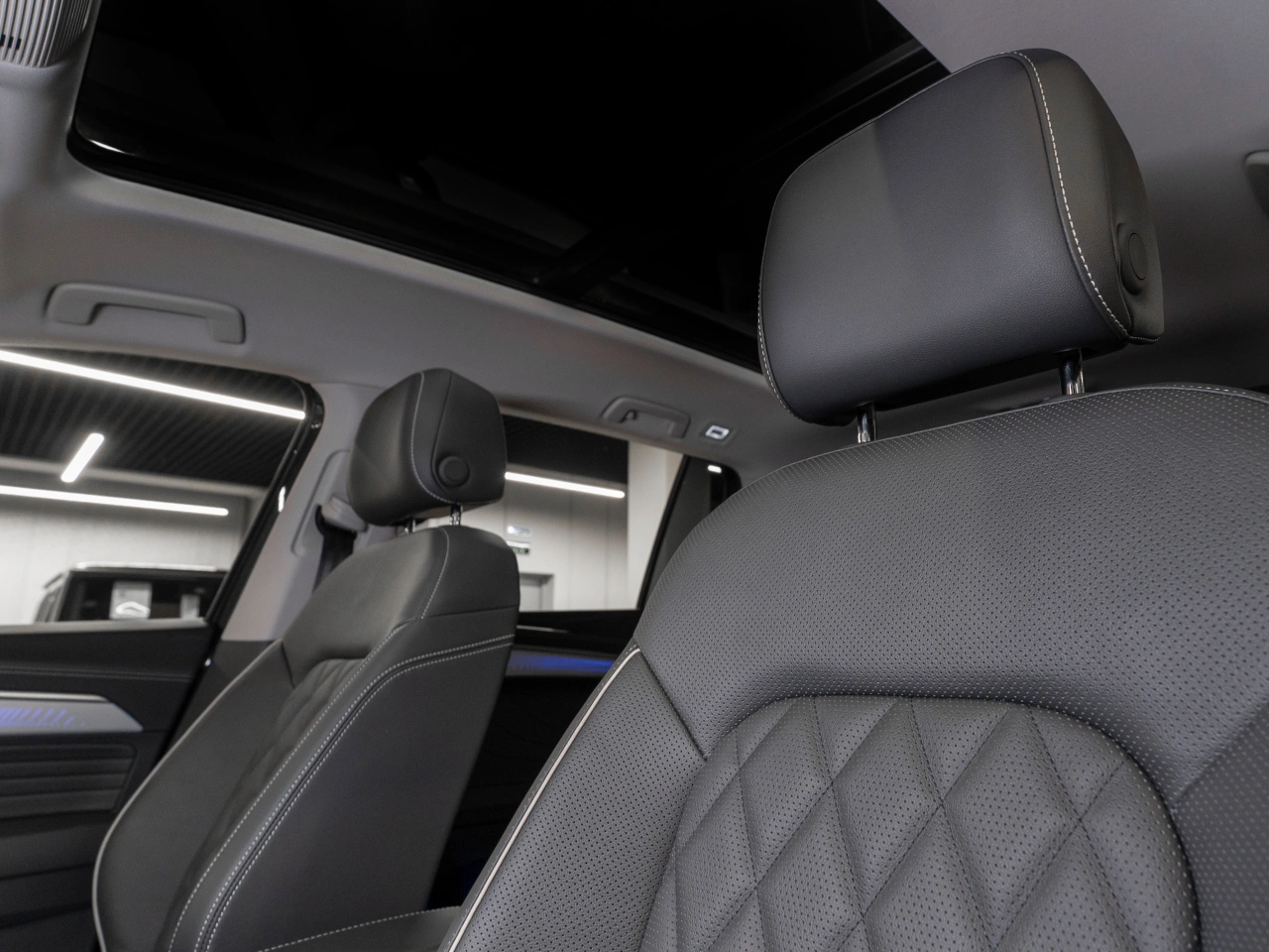 Обивка салона: искуственная кожа Панорамная крыша Отделка кожей рулевого колеса Мультифункциональное рулевое колесо Декоративная подсветка салона
