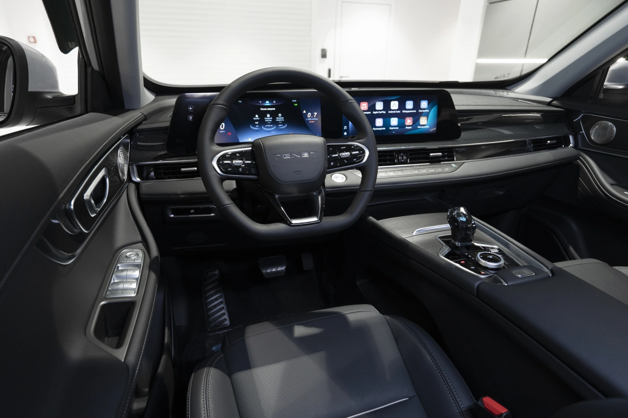 TENET T7 I поколения (2025 год) — это внедорожник, который сочетает в себе технологичность и практичность.\nПятидверный кузов и серый цвет придают автомобилю сдержанный, но выразительный вид.\nПод капотом — бензиновый двигатель объёмом 1,6 литра и мощностью 150 лошадиных сил, а роботизированная коробка передач обеспечивает плавное переключение скоростей.Автомобиль хорошо подходит как для городских поездок, так и для путешествий за город.\nЭлектрорегулировка зеркал, рейлинги на крыше и диски размером 18 дюймов добавляют практичности и функциональности.\nА благодаря системе курсовой стабилизации (ESP / ESC / DSC / VSA) и антиблокировочной системе тормозов (ABS) управление остаётся комфортным и безопасным в различных дорожных условиях.В салоне TENET T7 предусмотрено всё необходимое для комфортного пребывания.\nОбивка из искусственной кожи, подогрев всех сидений, обогрев рулевого колеса и лобового стекла, а также обогрев зеркал и форсунок стеклоомывателей делают поездки приятными даже в холодное время года.\nЭлектронная приборная панель, регулировка руля по высоте и вылету, а также регулировка сиденья водителя по высоте позволяют настроить салон под индивидуальные предпочтения.Функциональные возможности автомобиля дополнены современными технологиями.\nСистема доступа без ключа, дистанционный запуск двигателя и запуск двигателя с кнопки упрощают эксплуатацию.\nИнтеграция Android Auto и CarPlay позволяет удобно использовать мобильные устройства, а двухзонный климат-контроль обеспечивает комфортную температуру для водителя и пассажира.Безопасность в TENET T7 на высоком уровне: помимо ABS и системы курсовой стабилизации, автомобиль оснащён подушками безопасности (для водителя, пассажира и боковыми), системой ЭРА-ГЛОНАСС, датчиками давления в шинах, парктроником и камерой заднего вида.\nДля семей с детьми предусмотрены крепления для детских кресел на заднем ряду и блокировка замков задних дверей.Дополнительные удобства предоставляют круиз-контроль, датчик дождя, датчик света, электростеклоподъёмники и передний центральный подлокотник.\nФункция складывания спинки сиденья пассажира и третий задний подголовник повышают удобство размещения пассажиров и багажа.