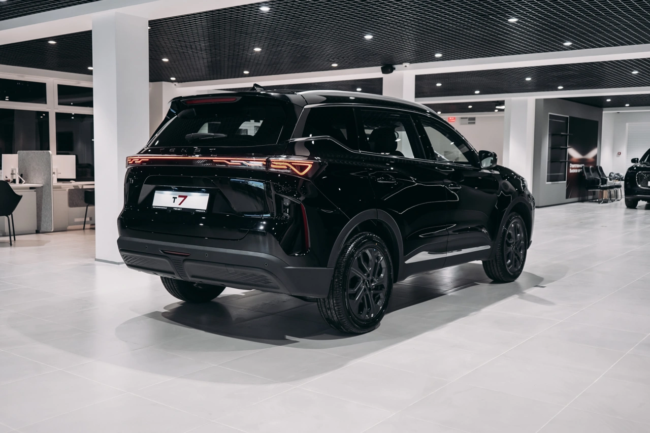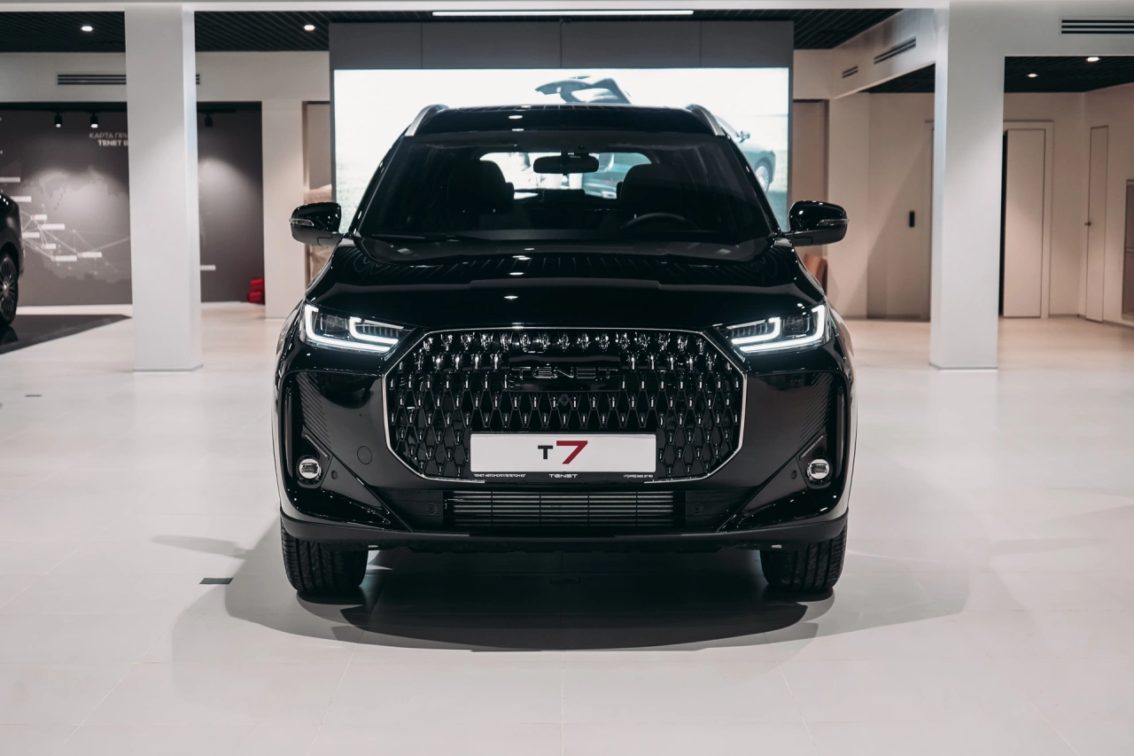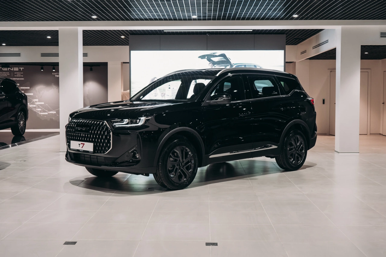 TENET T7 I 2025 года — это надёжный и функциональный внедорожник, который подойдёт как для городских поездок, так и для загородных путешествий.\nАвтомобиль оснащён бензиновым двигателем объёмом 1,6 литра и мощностью 150 лошадиных сил, роботизированной коробкой передач.\nЧёрный цвет кузова и пятидверная компоновка придают автомобилю стильный и лаконичный вид.Вместительный салон с обивкой из искусственной кожи и декоративной подсветкой создаёт комфортные условия для пассажиров.\nЭлектрорегулировка сиденья пассажира и память положения сиденья водителя обеспечивают удобство при длительных поездках.\nПодогрев всех сидений, электростеклоподъёмники, регулировка руля по высоте и вылету, а также усилитель рулевого управления делают управление и пребывание в автомобиле более приятными.Автомобиль оснащён современными системами, которые упрощают управление и повышают безопасность.\nБеспроводная зарядка для смартфона, поддержка Android Auto и CarPlay позволяют оставаться на связи и использовать привычные приложения во время поездки.\nКлимат-контроль, датчик дождя, датчик света и другие функции создают комфортные условия независимо от погоды.Система доступа без ключа, запуск двигателя с кнопки и дистанционный запуск двигателя делают эксплуатацию автомобиля удобной и интуитивно понятной.\nОткрытие багажника без помощи рук и электропривод крышки багажника добавляют практичности в повседневное использование.Безопасность водителя и пассажиров обеспечивается благодаря наличию антиблокировочной системы тормозов (ABS), системы курсовой стабилизации, подушек безопасности для водителя и пассажира, боковых подушек безопасности и оконных подушек безопасности (шторок).\nКрепление для детского кресла на заднем ряду и блокировка замков задних дверей обеспечивают дополнительную защиту для детей.Рейлинги на крыше, диски размером 18 дюймов и панорамная крыша дополняют образ внедорожника, делая его универсальным выбором для различных условий эксплуатации.\nОбогрев зеркал, электрорегулировка и электроскладывание зеркал, а также обогрев лобового стекла и форсунок стеклоомывателей обеспечивают комфорт в холодное время года.