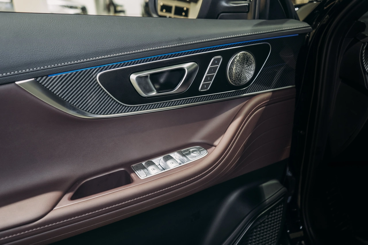 Обивка салона: искуственная кожа Панорамная крыша Регулировка сиденья водителя по высоте Отделка потолка чёрной тканью Декоративная подсветка салона