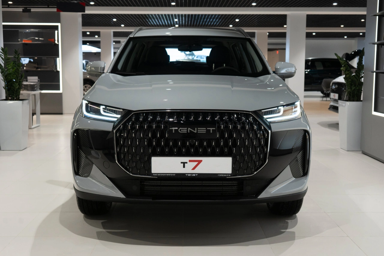TENET T7 I поколения (2026 год) — это внедорожник, который сочетает в себе функциональность и технологичность.\nПятидверный кузов и продуманная конструкция делают автомобиль подходящим как для городских поездок, так и для путешествий за город.\nСерый цвет кузова придаёт машине сдержанный и современный вид.Под капотом — бензиновый двигатель объёмом 1,6 литра и мощностью 150 лошадиных сил, который обеспечивает баланс между динамикой и экономичностью.\nРобот в качестве коробки передач гарантирует плавное переключение скоростей и удобство в управлении.В салоне TENET T7 — всё необходимое для комфортного вождения и поездок с пассажирами.\nКожаная обивка создаёт приятную атмосферу, а регулировка руля по высоте и вылету, а также регулировка сиденья водителя по высоте позволяют настроить удобное положение за рулём.\nПередний центральный подлокотник и функция складывания спинки сиденья пассажира повышают комфорт во время длительных поездок.\nТретий задний подголовник обеспечивает дополнительный комфорт для пассажиров.Среди технологических решений — электронная приборная панель, которая предоставляет всю необходимую информацию водителю, а также системы Android Auto и CarPlay, позволяющие интегрировать смартфон с автомобилем.\nАудиосистема создаёт приятную атмосферу в салоне.Безопасность и удобство вождения обеспечивают:* антиблокировочная система тормозов (ABS);* система курсовой стабилизации (ESP / ESC / DSC / VSA);* подушки безопасности (водителя, пассажира, боковые);* парктроник и камера заднего вида;* датчик давления в шинах.Также в автомобиле предусмотрены системы, которые сделают поездки в любую погоду более комфортными:* обогрев всех сидений;* обогрев лобового стекла;* обогрев форсунок стеклоомывателей;* обогрев зеркал;* электрорегулировка зеркал;* датчик дождя и датчик света.Дополнительные удобства предоставляют:* система доступа без ключа;* дистанционный запуск двигателя;* запуск двигателя с кнопки;* круиз-контроль;* электростеклоподъёмники на всех дверях.Рейлинги на крыше и 18-дюймовые диски подчёркивают спортивный характер внедорожника, а блокировка замков задних дверей и иммобилайзер обеспечивают дополнительную безопасность.\nЭРА-ГЛОНАСС позволит оперативно получить помощь в случае необходимости.\nКрепление для детского кресла на заднем ряду делает автомобиль удобным для семей с детьми.