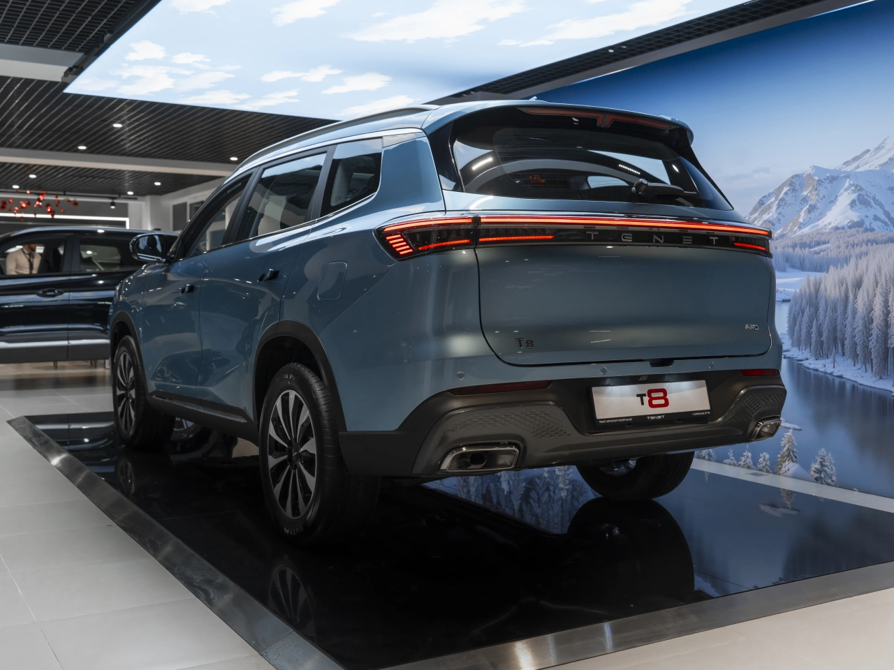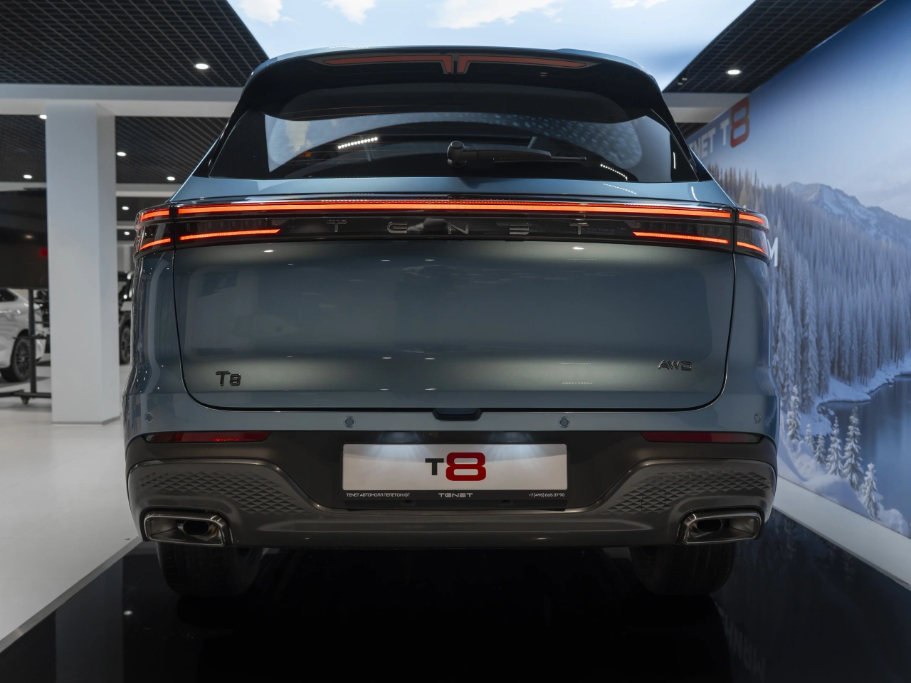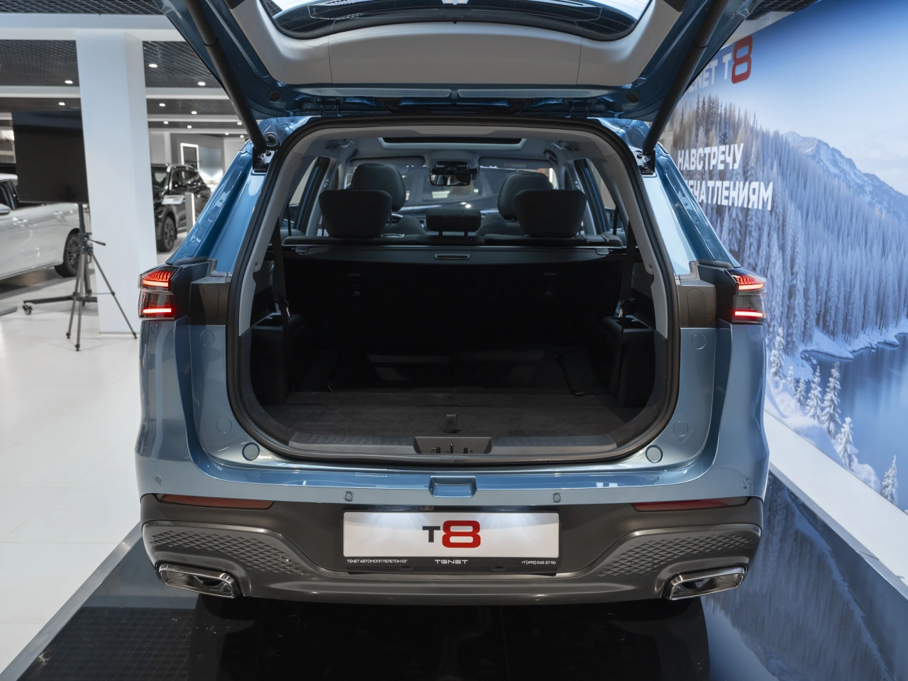 TENET T8 I 2025 года — это надёжный и технологичный внедорожник, который подойдёт как для городских поездок, так и для путешествий.Автомобиль оснащён двухлитровым бензиновым двигателем мощностью 197 лошадиных сил и роботизированной коробкой передач.\nСинеё исполнение кузова и пятидверная компоновка делают его универсальным выбором для различных условий эксплуатации.Вместительный салон с обивкой из искусственной кожи и эргономичными сиденьями, которые регулируются электроприводом, обеспечивает комфорт для всех пассажиров.\nПодогрев всех сидений, электростеклоподъёмники и регулировка руля по высоте и вылету добавляют удобства в повседневное использование.Автомобиль оснащён современными системами, которые обеспечивают безопасность и комфорт.\nАнтиблокировочная система тормозов (ABS), антипробуксовочная система (ASR / TCS / TRC) и система курсовой стабилизации (ESP / ESC / DSC / VSA) помогают контролировать автомобиль в различных условиях.\nДатчик давления в шинах, система старт-стоп, круиз-контроль и другие функции делают вождение более удобным и экономичным.Богатая комплектация включает в себя бортовой компьютер, аудиосистему, Bluetooth, USB, розетку 12V, Android Auto и CarPlay.\nКлимат-контроль, двухзонный, обеспечивает комфортный микроклимат в салоне.Дополнительные опции, такие как дистанционный запуск двигателя, система доступа без ключа, открытие багажника без помощи рук и электропривод крышки багажника, делают использование автомобиля ещё более удобным.\nПарктроники передний и задний, камера 360, а также системы безопасности, включая подушки безопасности водителя, пассажира, боковые подушки безопасности и оконные подушки безопасности (шторки), обеспечивают высокий уровень защиты.Рейлинги на крыше, диски 18 дюймов, центральный замок и иммобилайзер дополняют список преимуществ этого внедорожника.\nДекоративная подсветка салона, обогрев рулевого колеса, люк и панорамная крыша создают атмосферу уюта и комфорта.