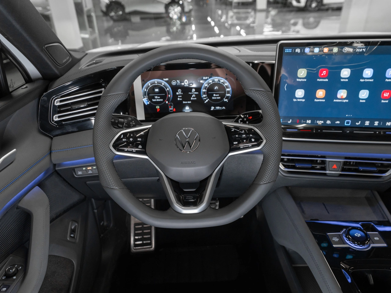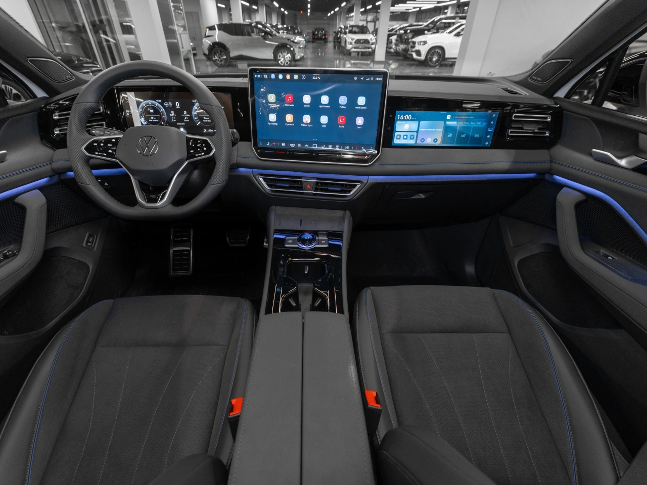 <p class="padding-bot"><span class="strong">Вместительный внедорожник</span> | <span class="strong">Автомат</span> | <span class="strong">Полный привод</span> | <span class="strong">Новый автомобиль</span> | <span class="strong">R-Line</span> | <span class="strong">Бензин 220 л.с.</span> | <span class="strong">2026 модельный год</span> | <span class="strong"></span></p>Автомобиль в состоянии нового - не требует дополнительных вложений<h3 >Что с документами</h3><ul class="padding-bot"><li >⦁ ПТС электронный</li><li >⦁ Полный пакет документов и ключей</li><li >⦁ Возможна любая форма продажи и оплаты</li></ul><h3 >Чем выделяется</h3><ul class="padding-bot"><li >⦁ Белоснежный кузов</li><li >⦁ Бензиновый двигатель 220 л.с.</li><li >⦁ Полный привод</li><li >⦁ Роботизированная КПП</li><li >⦁ R-Line</li><li >⦁ Улучшенная шумоизоляция</li><li >⦁ Запуск двигателя с кнопки</li><li >⦁ Трехспицевый мультируль в коже</li><li >⦁ Панорамная крыша</li><li >⦁ Цифровая приборная панель</li><li >⦁ Адаптивный круиз-контроль с ассистентом удержания в полосе</li><li >⦁ Круговой обзор + парковочный ассистент</li><li >⦁ Многофункциональная мультимедиа с Carplay</li><li >⦁ Беспроводная зарядка для смартфона</li><li >⦁ Проекция на ветровое стекло</li><li >⦁ Зимний пакет (электрообогрев передних сидений, руля)</li><li >⦁ Вентиляция передних сидений</li><li >⦁ Трехзонный климат-контроль</li><li >⦁ Контурная подсветка салона</li><li >⦁ Черный потолок</li><li >⦁ Расширенная отделка салона темной кожей и бархатной Alkantara</li><li >⦁ Электропривод передних сидений, зеркал и стеклоподъемников, двери багажника</li><li >⦁ Эргономичные передние сиденья с боковой поддержкой и расширенными регулировками положения</li><li >⦁ Водительское сиденье с памятью положения</li><li >⦁ Индивидуальный мультимедийный дисплей для пассажира 1-го ряда</li><li >⦁ Центральный подлокотник для пассажиров 2-го ряда</li><li >⦁ Мониторинг слепых зон и удержание в полосе</li><li >⦁ Рейлинги на крыше</li><li >⦁ Матричная оптика</li><li >⦁ Колеса на летних шинах Hankook</li></ul><p class="padding-bot"><span class="strong">Как приобрести выгодно?</span> Запишитесь на тест-драйв и получите скидку до 5% при покупке любого авто с пробегом</p>