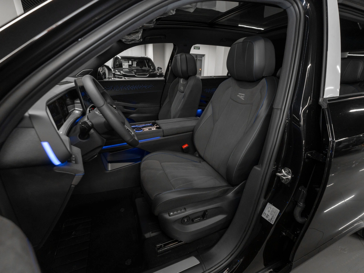 Обивка салона: искуственная кожа Панорамная крыша Отделка кожей рулевого колеса Мультифункциональное рулевое колесо Декоративная подсветка салона