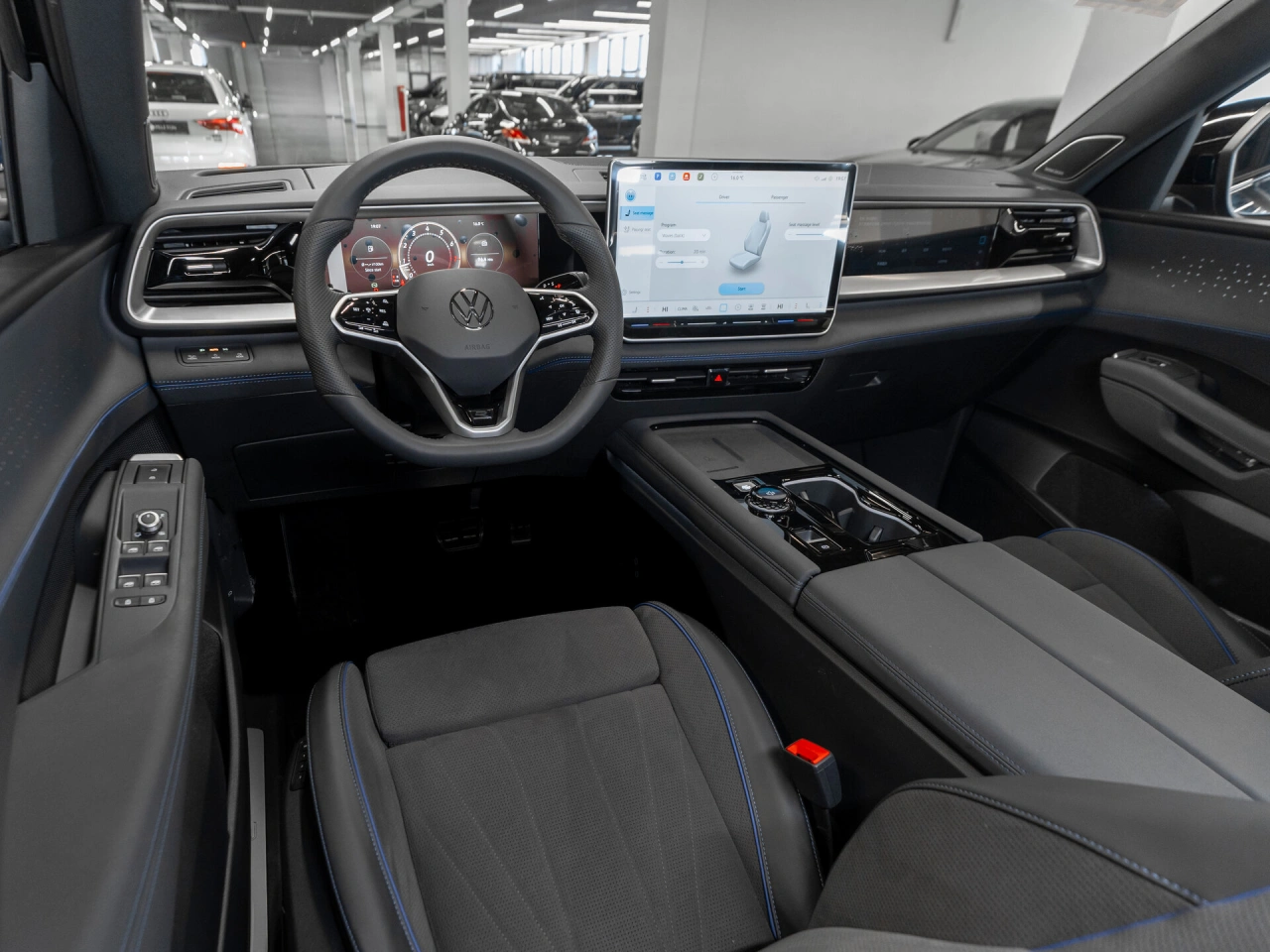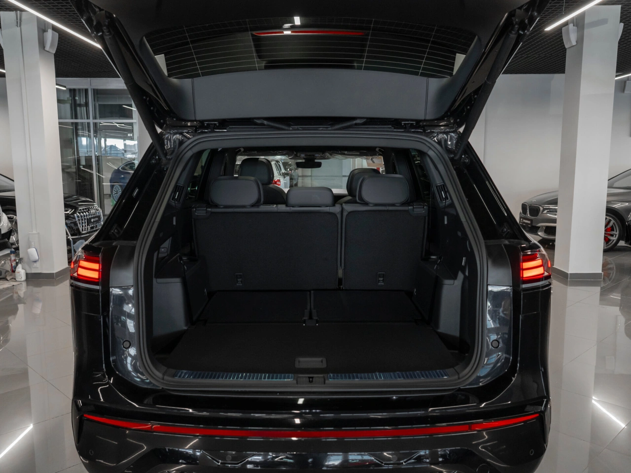<p class="padding-bot"><span class="strong">Семейный кроссовер</span> | <span class="strong">7 мест</span> | <span class="strong">Полный привод</span> | <span class="strong">Робот</span> | <span class="strong">R-Line</span> | <span class="strong">Новый</span> | <span class="strong">Бензин 272 л.с.</span></p>Новый автомобиль - не требует дополнительных вложений<h3 >Что с документами</h3><ul class="padding-bot"><li >* ПТС электронный</li><li >* Полный пакет документов и ключей</li><li >* Возможна любая форма продажи и оплаты</li></ul><h3 >Чем выделяется</h3><ul class="padding-bot"><li >* Кузов в цвете черный оникс</li><li >* Бензиновый двигатель 272 л.с.</li><li >* Полный привод</li><li >* Роботизированная КПП</li><li >* Антихром</li><li >* Три ряда сидений (7 мест)</li><li >* Выдвижные дверные ручки</li><li >* Пакет R-Line</li><li >* Запуск двигателя с кнопки</li><li >* Селектор КПП на руле</li><li >* Трехспицевый мультируль в коже</li><li >* Панорамная крыша</li><li >* Цифровая приборная панель</li><li >* Проекция на ветровое стекло</li><li >* Круиз-контроль</li><li >* Система интеллектуальной безопасности движения</li><li >* Контроль слепых зон</li><li >* Круговой обзор + парковочный ассистент</li><li >* Широкоэкранная многофункциональная мультимедиа с CarPlay</li><li >* Беспроводная зарядка для смартфона</li><li >* Премиальная акустика Harman\kardon</li><li >* Трехзонный климат-контроль</li><li >* Контурная подсветка салона</li><li >* Расширенная отделка салона комбинацией из темной бархатной Alcantara и гладкой кожи</li><li >* Оттоманка в сиденье пассажира 1-го ряда</li><li >* Солнцезащитные шторки и центральный подлокотник для пассажиров 2-го ряда</li><li >* Крепления ISOFIX для детских кресел</li><li >* Электропривод сидений, зеркал и стеклоподъемников, двери багажника</li><li >* Водительское сиденье с памятью положения</li><li >* Электрообогрев всех сидений, зеркал, руля</li><li >* Вентиляция и массаж передних сидений</li><li >* Электроручник</li><li >* Рейлинги на крыше</li><li >* Тонировка</li><li >* Диодная оптика</li><li >* Авто на летних шинах</li></ul><p class="padding-bot"><span class="strong">Как приобрести выгодно?</span> Запишитесь на тест-драйв и получите скидку до 5% при покупке любого авто с пробегом</p>
