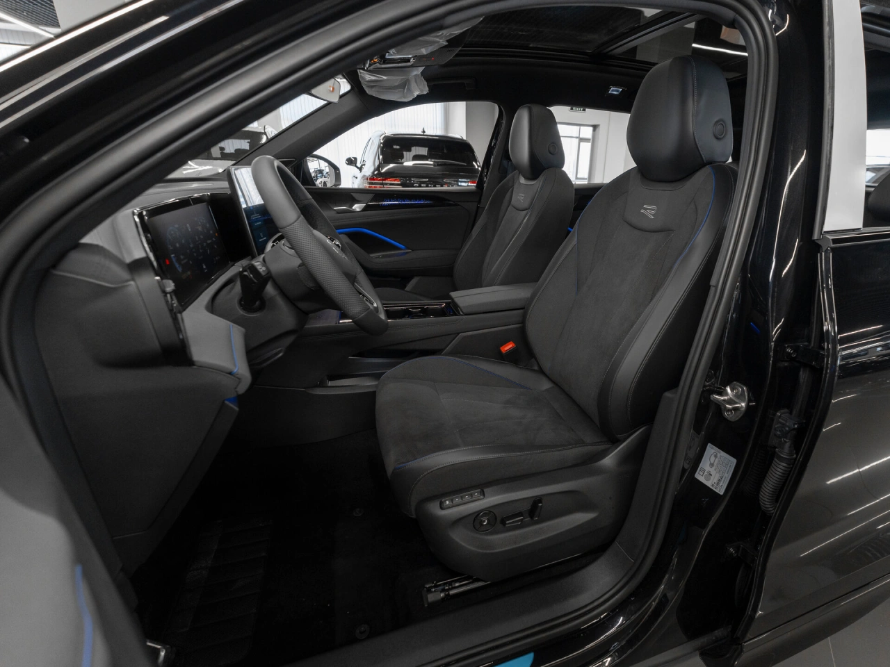 Обивка салона: комбинированый Панорамная крыша Отделка кожей рулевого колеса Мультифункциональное рулевое колесо Декоративная подсветка салона