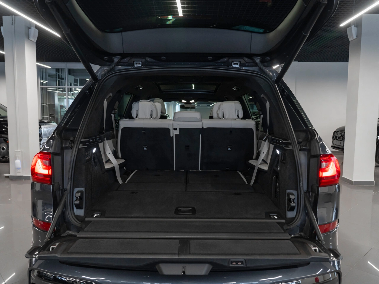 Подогрев всех сидений Электрические стеклоподъёмники всех окон Запуск двигателя с кнопки Парктроник задний Парктроник передний Программируемый предпусковой отопитель Электрорегулировка сидения водителя с памятью Электрорегулировка сидения пассажира с памятью Система доступа без ключа Усилитель рулевого управления Электропривод крышки багажника Система помощи при старте в гору Датчик света Обогрев зеркал Пневмоподвеска Вентиляция передних сидений Передний центральный подлокотник Третий ряд сидений Проекционный дисплей Доводчик дверей