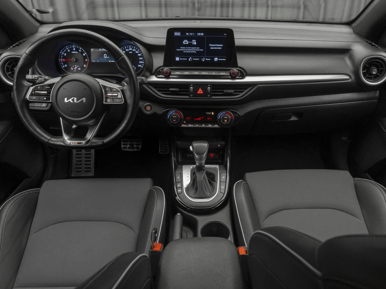Обивка салона: комбинированый Отделка кожей рулевого колеса Спортивные передние сидения Регулировка сиденья водителя по высоте Мультифункциональное рулевое колесо Отделка потолка чёрной тканью