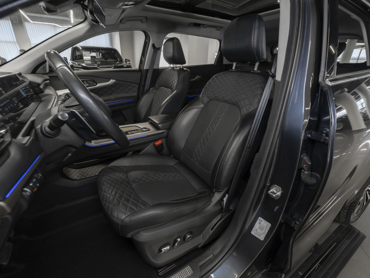 Кожаный салон Панорамная крыша Отделка кожей рулевого колеса Регулировка сиденья водителя по высоте Мультифункциональное рулевое колесо Декоративная подсветка салона