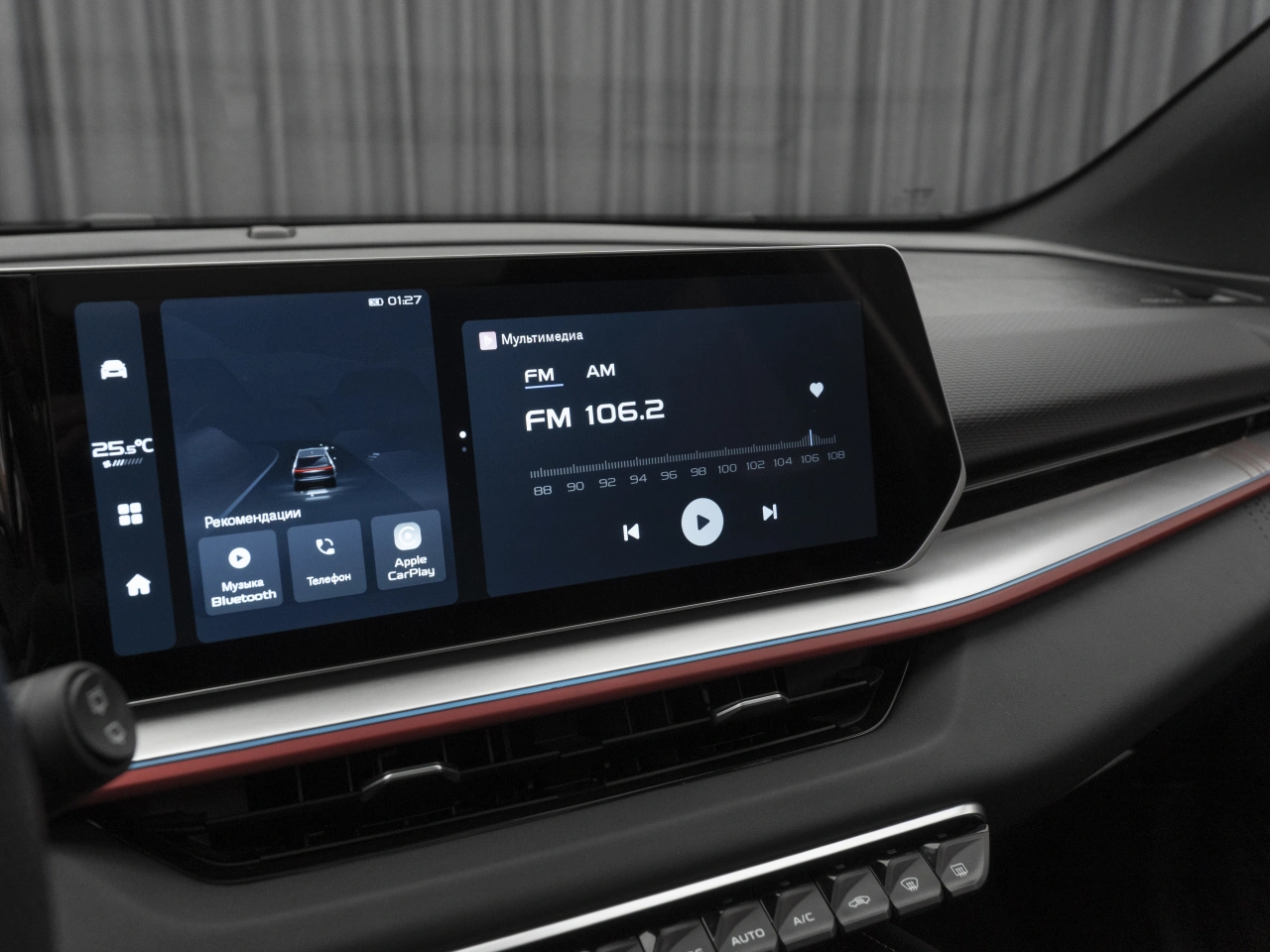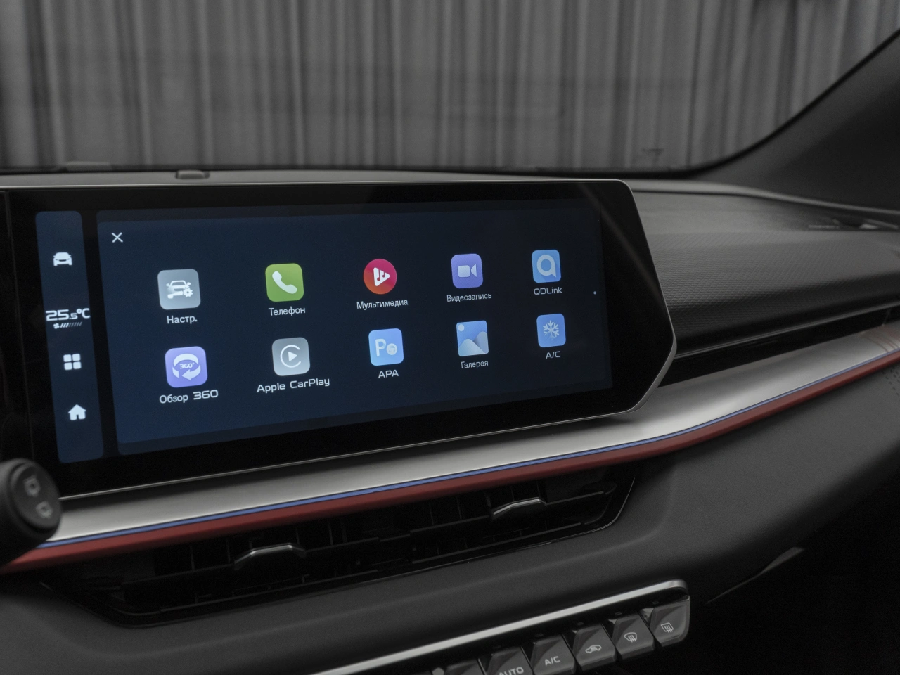 Обивка салона: комбинированый Панорамная крыша Отделка кожей рулевого колеса Тёмный салон Мультифункциональное рулевое колесо Декоративная подсветка салона