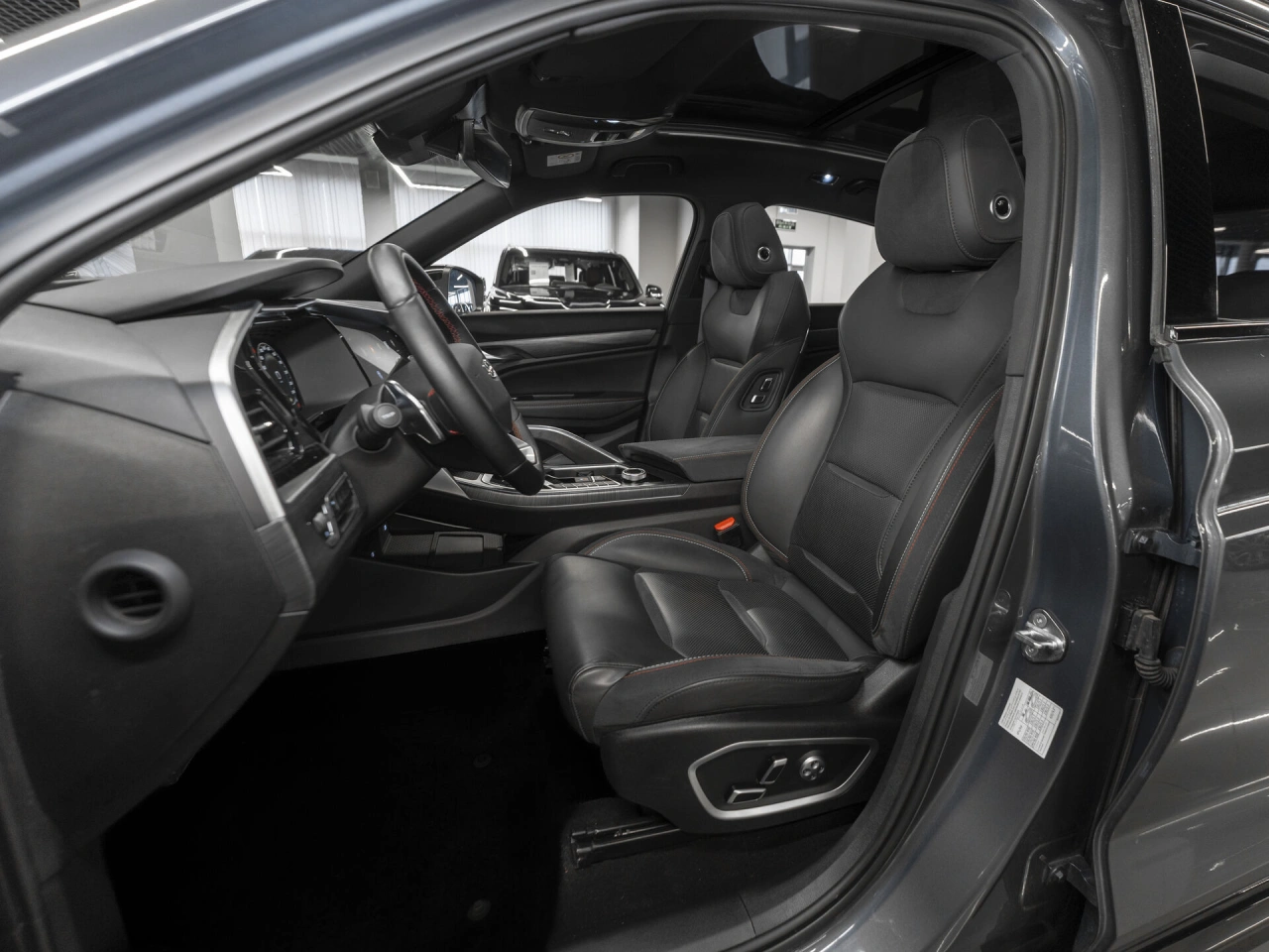 Обивка салона: комбинированый Панорамная крыша Отделка кожей рулевого колеса Тёмный салон Мультифункциональное рулевое колесо Отделка потолка чёрной тканью Декоративная подсветка салона