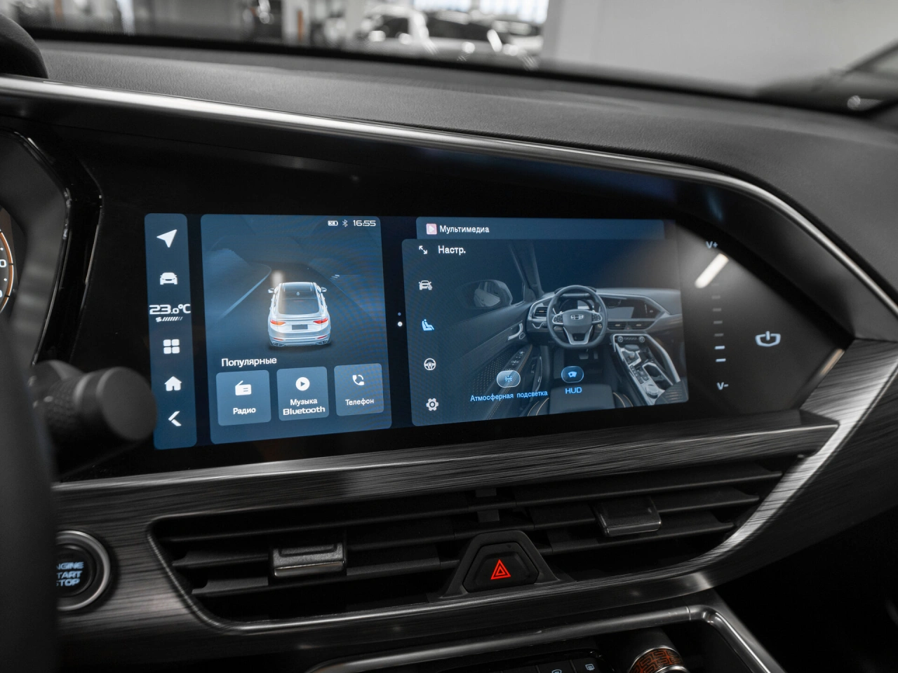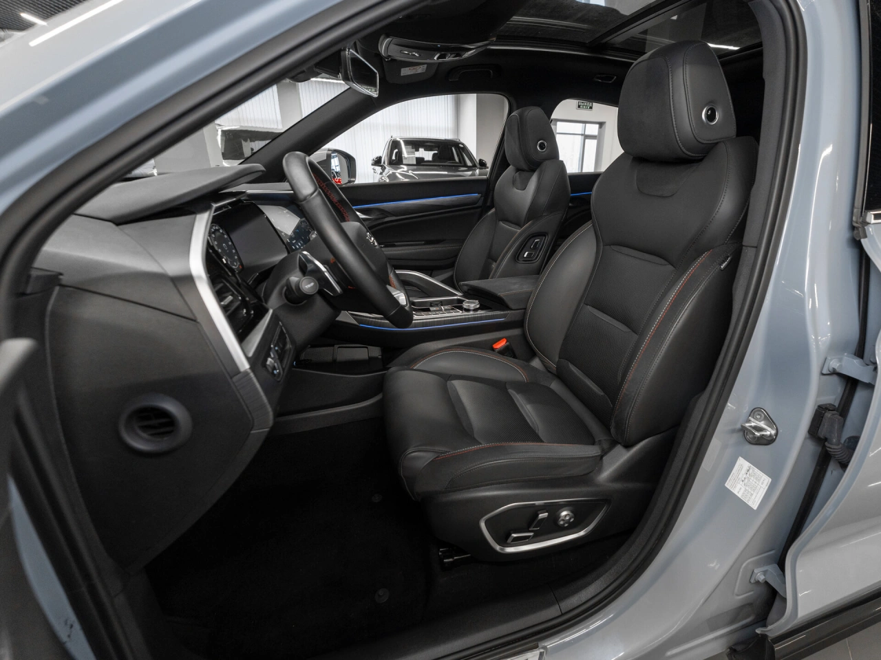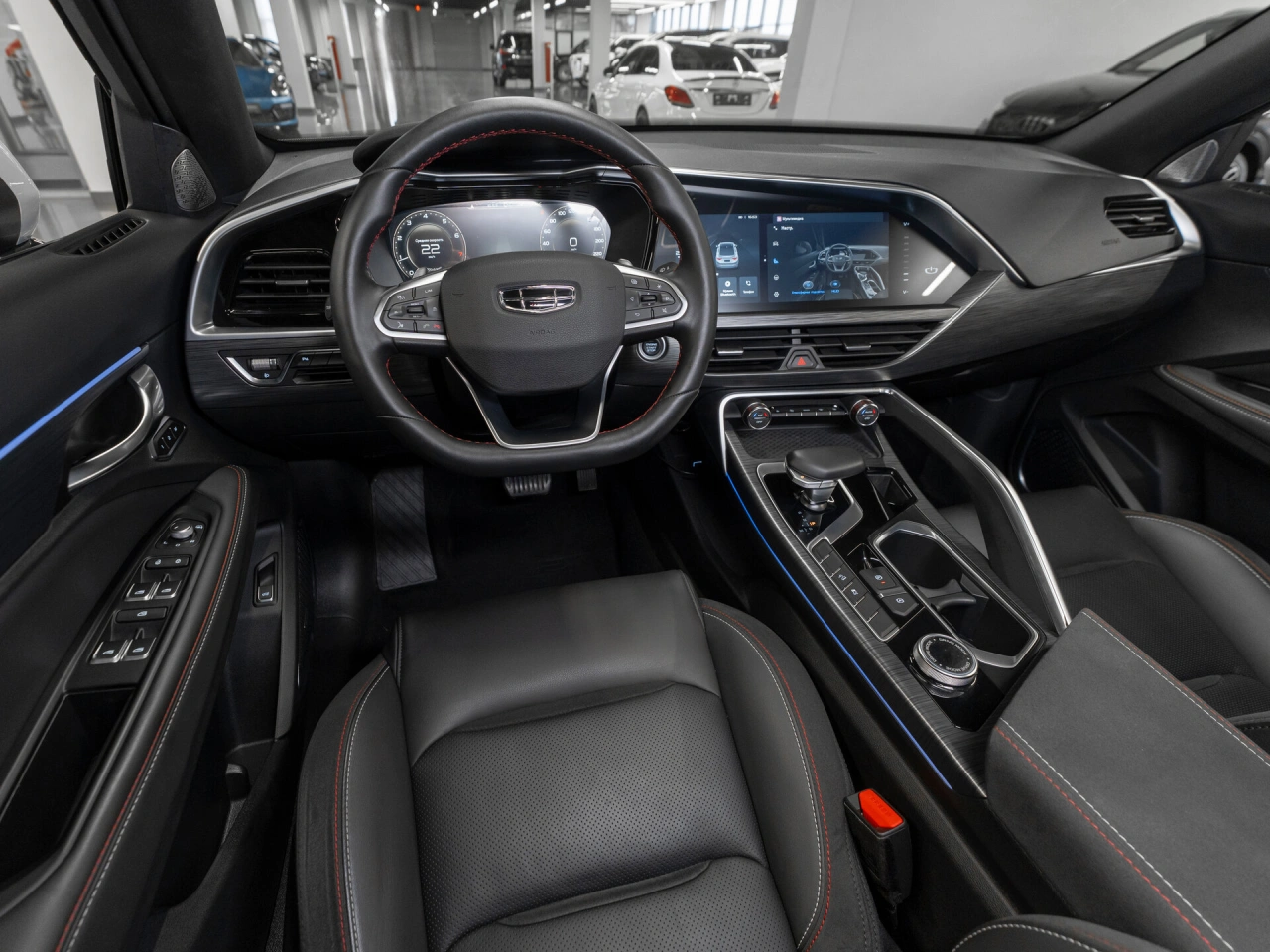 Обивка салона: комбинированый Панорамная крыша Отделка кожей рулевого колеса Тёмный салон Мультифункциональное рулевое колесо Отделка потолка чёрной тканью Декоративная подсветка салона