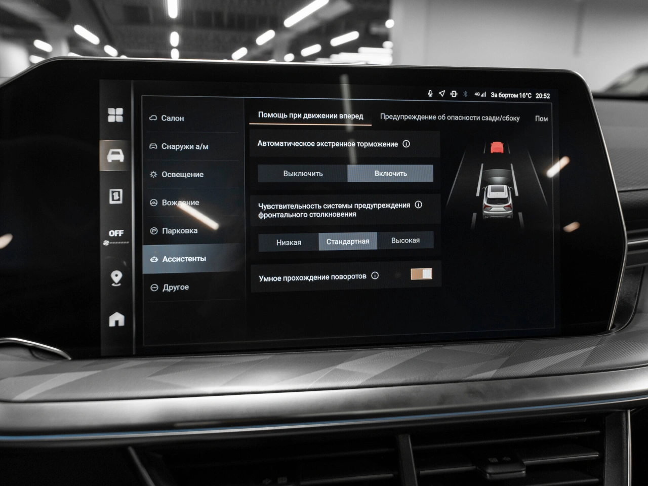 Датчик давления в шинах Датчик усталости водителя Система контроля за полосой движения Система предотвращения столкновения Система распознавания дорожных знаков