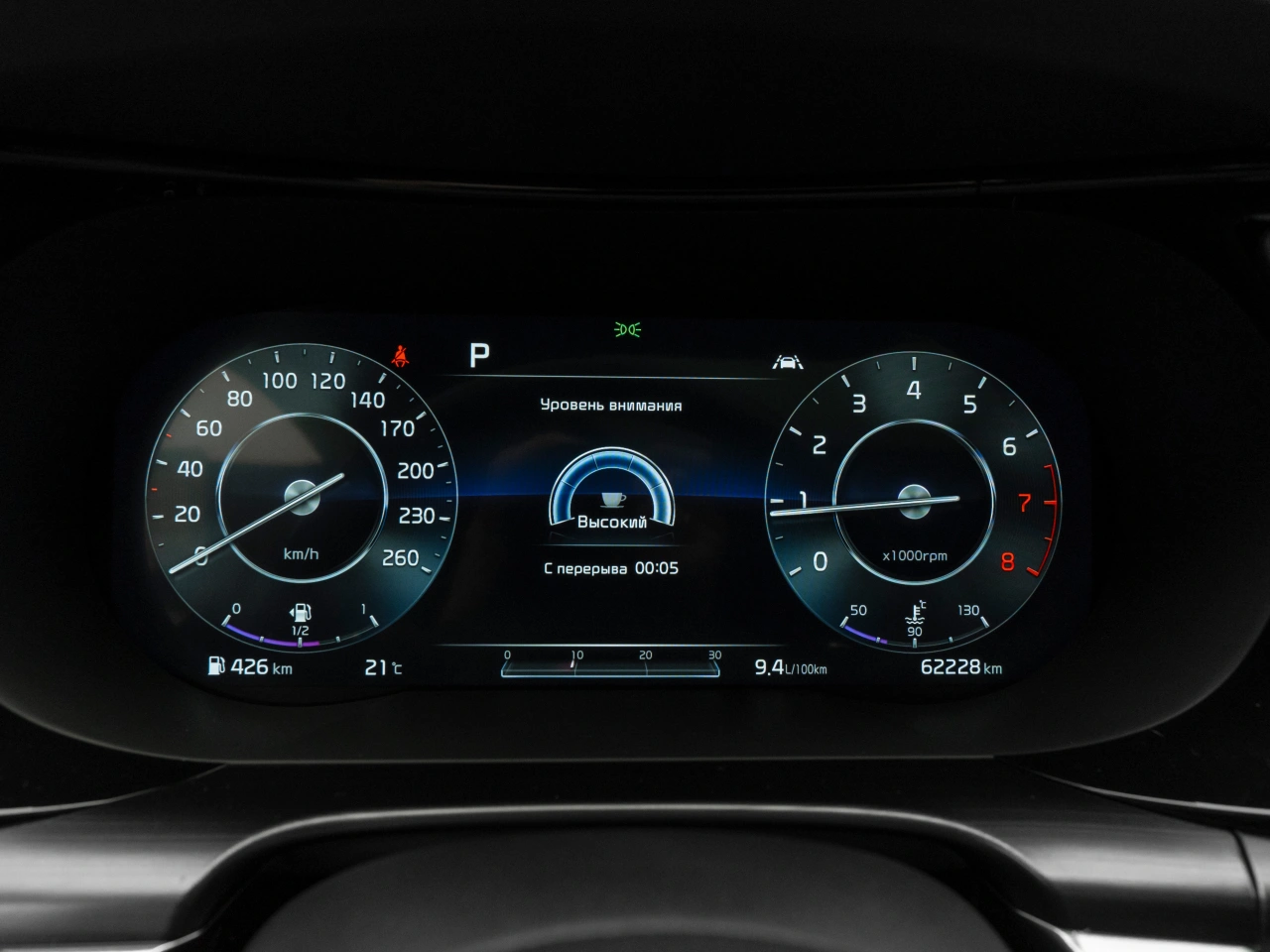 Датчик давления в шинах Датчик усталости водителя Система контроля за полосой движения Система предотвращения столкновения Противотуманные фары