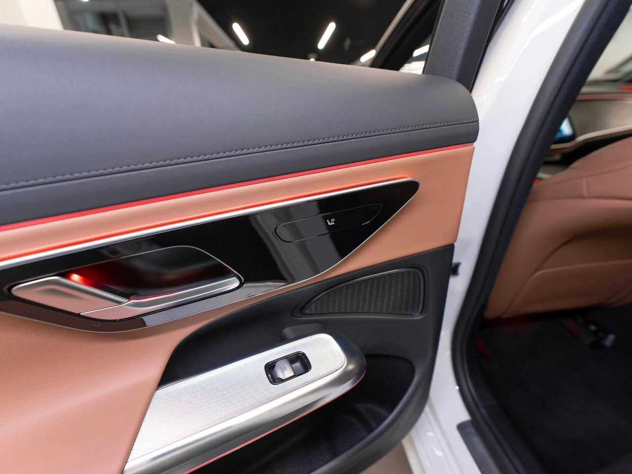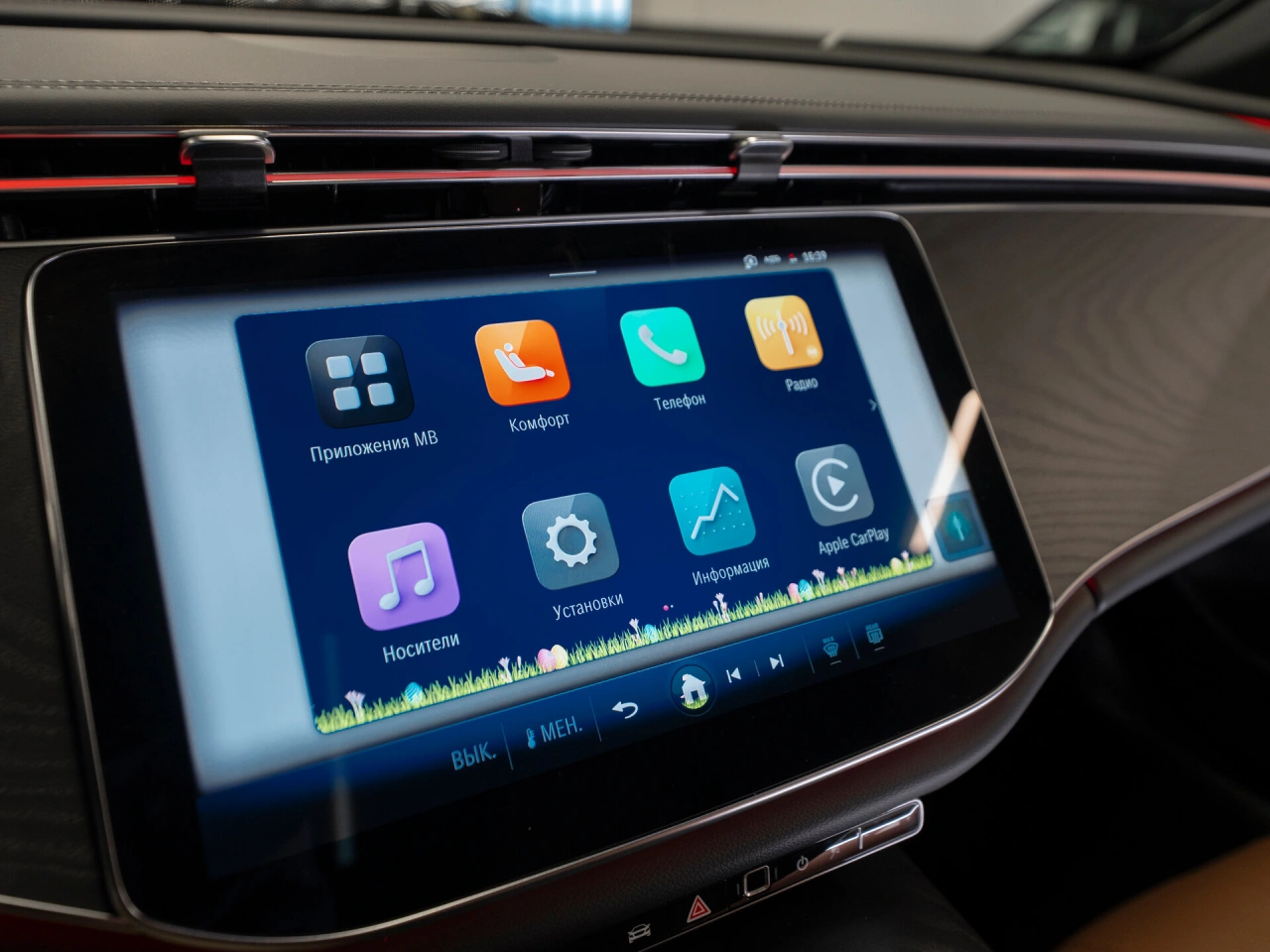 Обивка салона: искуственная кожа Панорамная крыша Отделка кожей рулевого колеса Отделка потолка чёрной тканью Декоративная подсветка салона