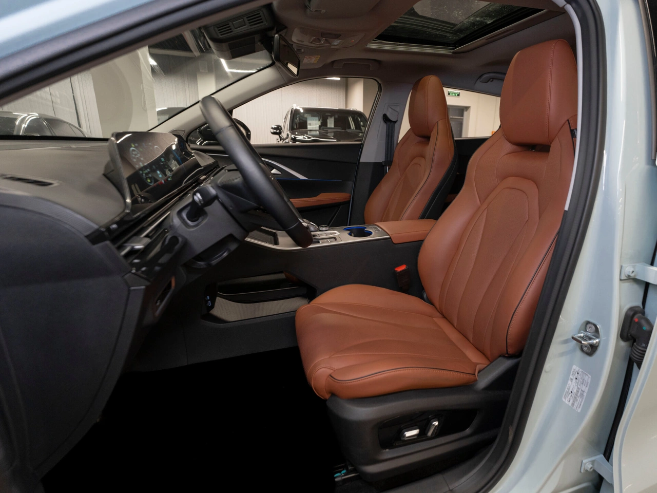 Обивка салона: искуственная кожа Панорамная крыша Отделка кожей рулевого колеса Тёмный салон Регулировка сиденья водителя по высоте Мультифункциональное рулевое колесо Декоративная подсветка салона